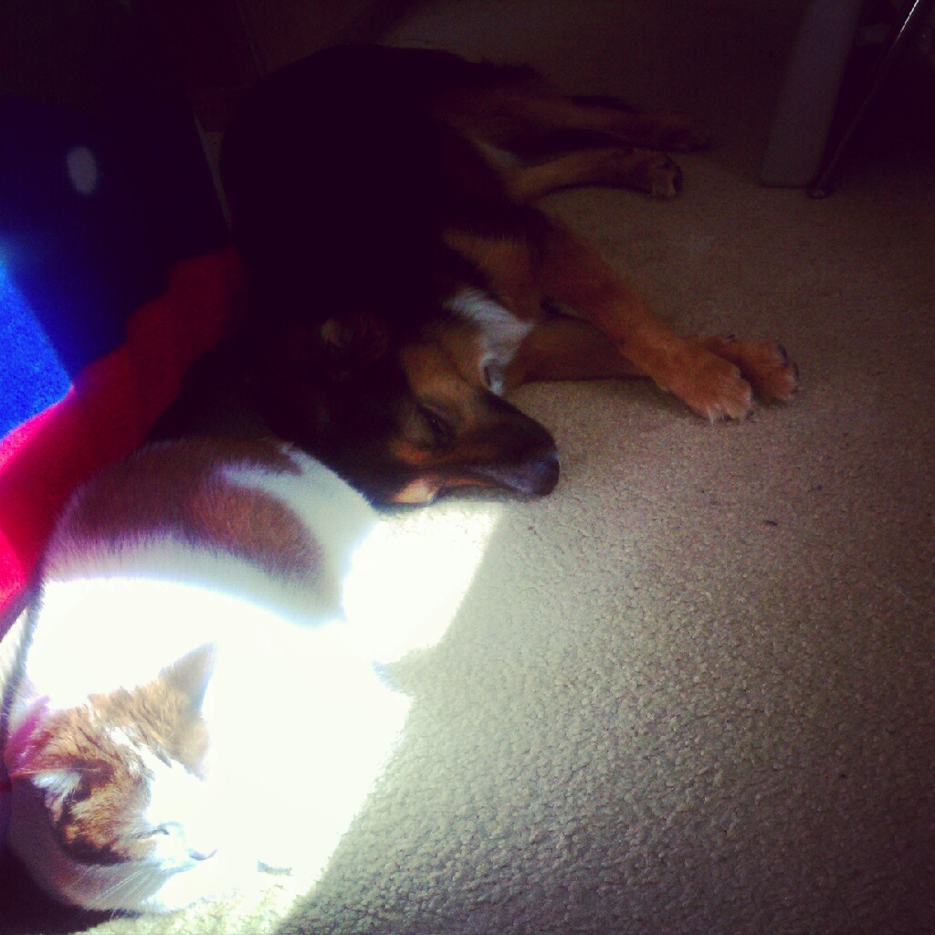 So, I finished my dinner and went to pick him up to spend a few days with us at home before we took him back to be euthanized. They were good days. He nibbled small amounts of tuna and had tons of snuggles. I slept with him on the couch for all 3 of those nights. He was exhausted and weak from not being able to eat much, but he was still happy to be snuggled up with either of us and to be loved on.