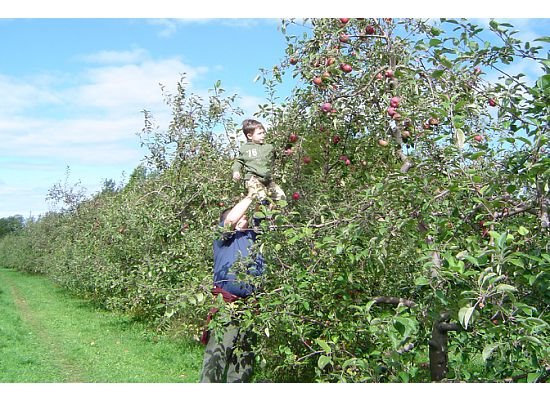 Yesterday, we went apple picking. Up until Friday, we hadn’t planned on it, but I was looking at a local website, and there it was listed as something to do. I wasn’t sure that Hub would go for it; neither of us had ever picked apples before, but the fact that they had a train take you out in to the orchard totally sold him.