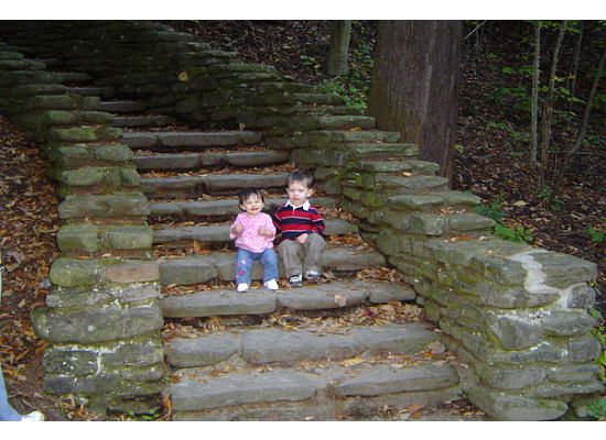 Every Columbus Day Weekend, we travel to Letchworth State Park, which is a gigantic park set around a gorge. The scenery is breathtaking. We never know what the weather will have in store for us—snow, rain, extreme heat, but we go no matter what. In 2005 we began taking photos near Wolf Creek on a set of stone stairs. We found ourselves there again in 2006 and took another set of photos—one of which actually was our Christmas card that year. It has become a tradition now, and will be for as long as we can keep it up.