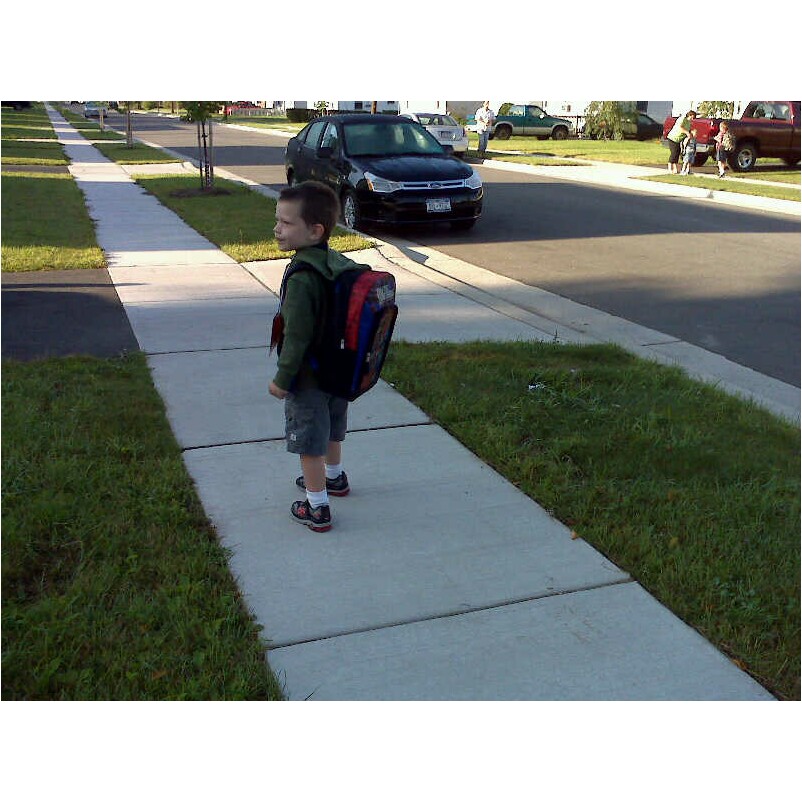 The bus left and we waited a few minutes before heading over to the school. Hub pulled in to the parking lot and we took a spin around. Bud was already off the bus, standing on the steps of the school. As we left the parking lot, he saw us and waved. It was no big deal.