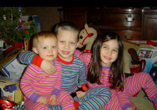 4. I love their stripey jammies!How awful that you all got sick at the same time. Glad everyone is feeling better now.The snow seems to have missed us. All around us there's lots of snow, but we haven't even had to shovel anything yet! How cool of hub to make a ramp down the porch!