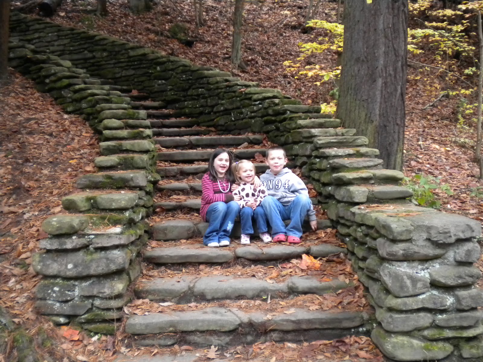 In the Fall of 2005, Hub, Bud, Lucy and I took an impromptu trip to Letchworth State Par. Hub and I had been going for years, usually around my birthday, and we just needed to get out of the house that day. Hub happened to take Bud’s photo on some stairs. The next year we happened upon the same stairs (not an easy feat…this park is GIGANTIC), and took a photo of Bud and Lucy together. And just like that, a tradition was born. We’ve taken the kids’ photos every year in October since 2005. It has been 40 degrees, and it has been 80 degrees. In 2008, Bud and Lucy dropped poor baby Liv on her head (stellar parenting having a 3 and 4 year old hold a 3-month-old on a set of stone stairs). Liv refused to cooperate in 2009—I think to get back at us. I love how each year, things change but they also stay the same.