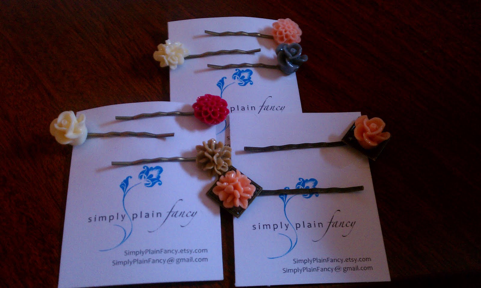 I also mentioned yesterday my new love affair with decorated hairpins, and I got a few questions about them, so I thought I would show you how cute they are. I have the most ridiculous fine will not do anything hair you can imagine. So fine that clips do not stay in, or if I can get them to stay, they somehow look wrong. I’ve used plain bobby pins to get my hair out of my face in the past, but really…so boring. So when I came upon the flowered ones a few weeks ago, I went a bit crazy. Then I shopped on etsy last week, and went a bit more crazy. It’s safe to say now that I have a hair pin for every occasion.