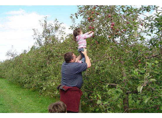 Yesterday, we went apple picking. Up until Friday, we hadn’t planned on it, but I was looking at a local website, and there it was listed as something to do. I wasn’t sure that Hub would go for it; neither of us had ever picked apples before, but the fact that they had a train take you out in to the orchard totally sold him.
