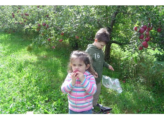 Lucy ran up and down the rows, sampling every kind of apple they had. I swear to you, she ate no fewer than 10 apples.