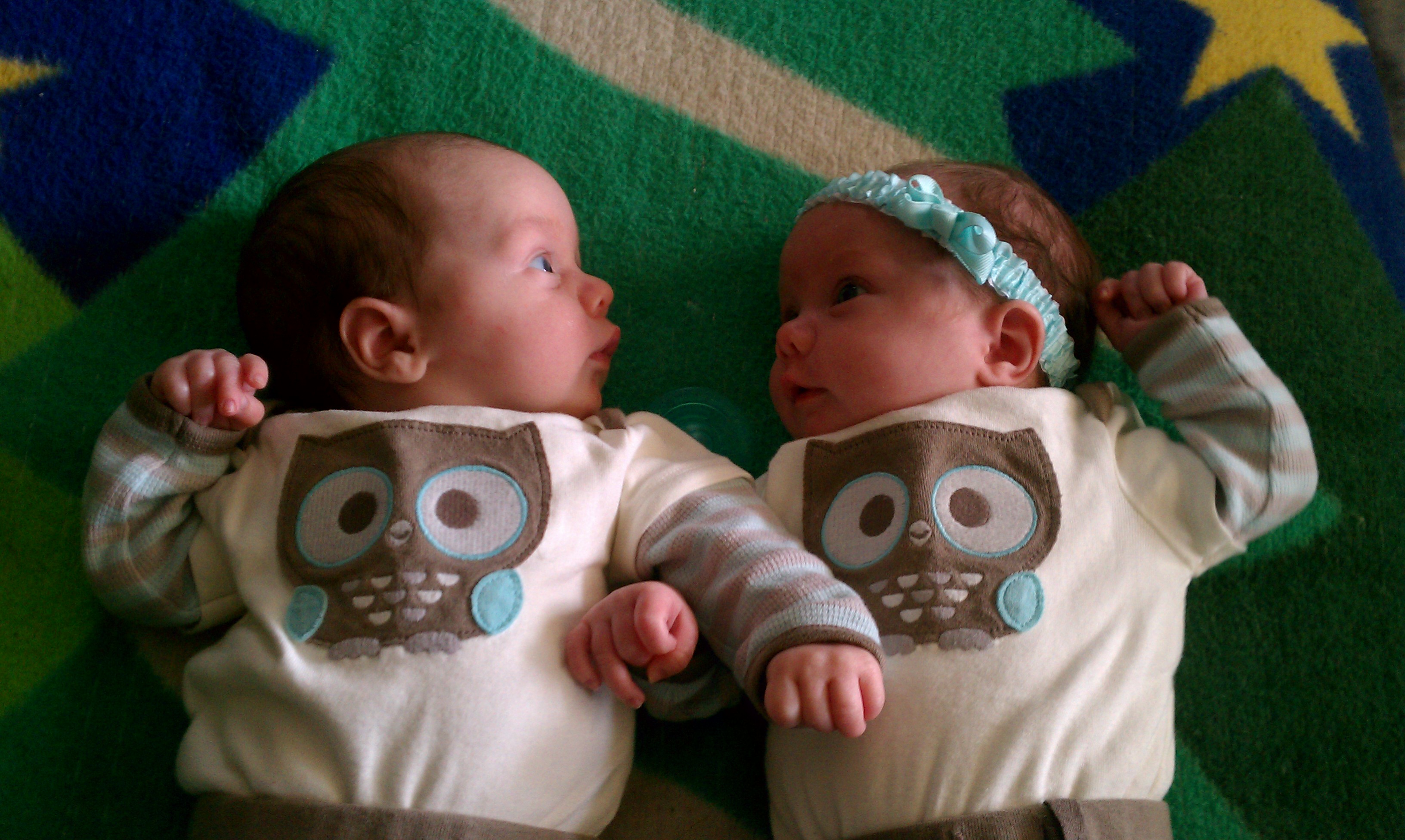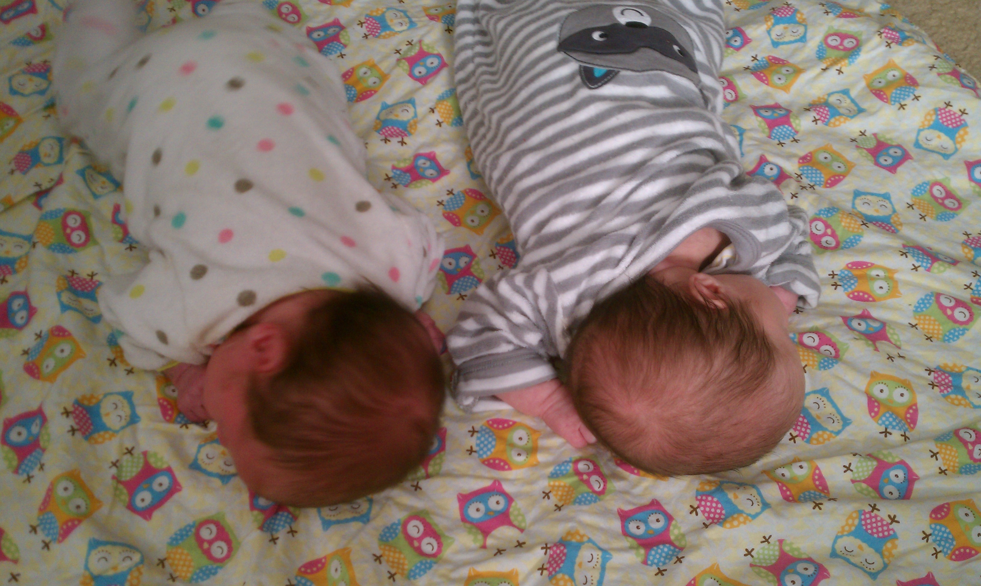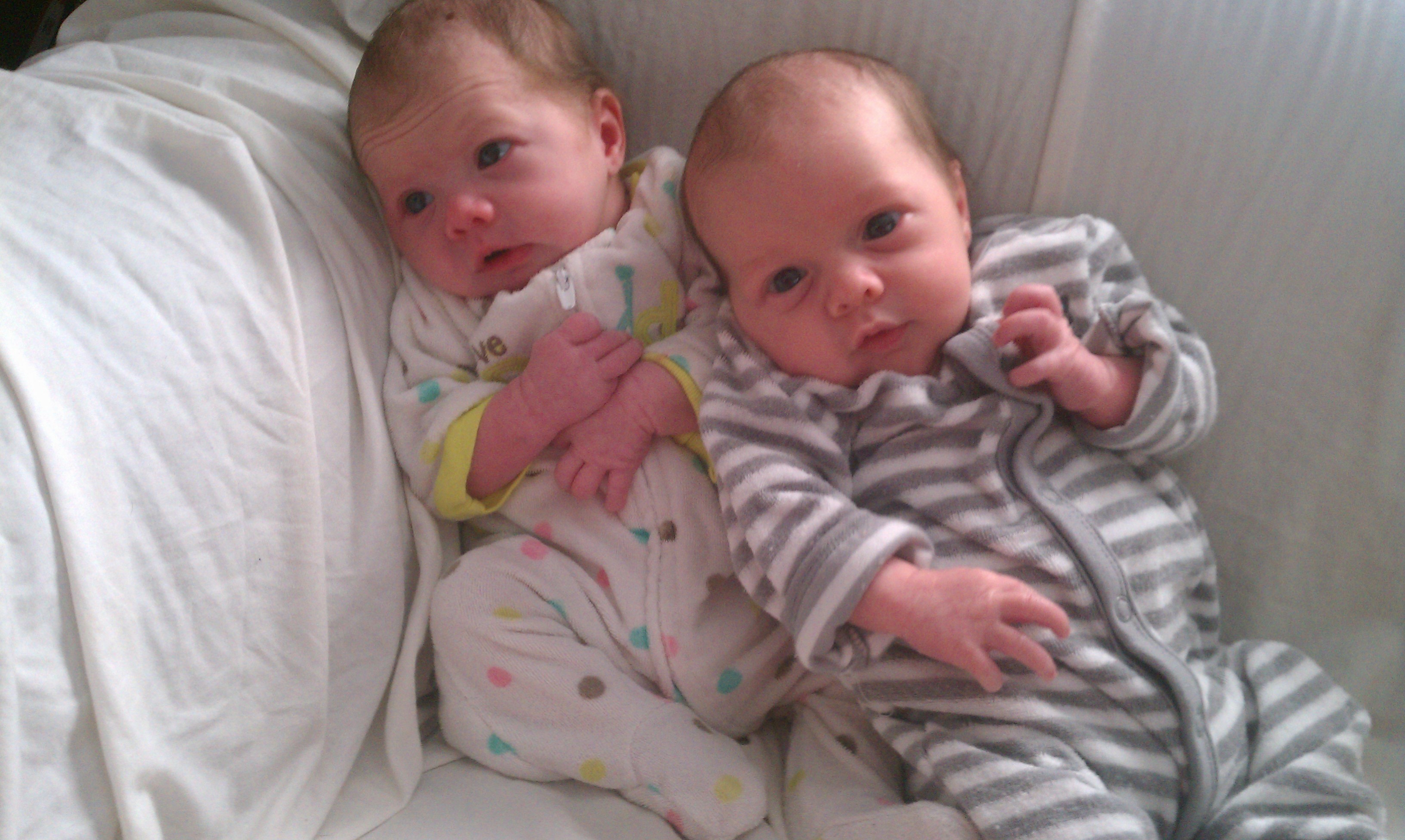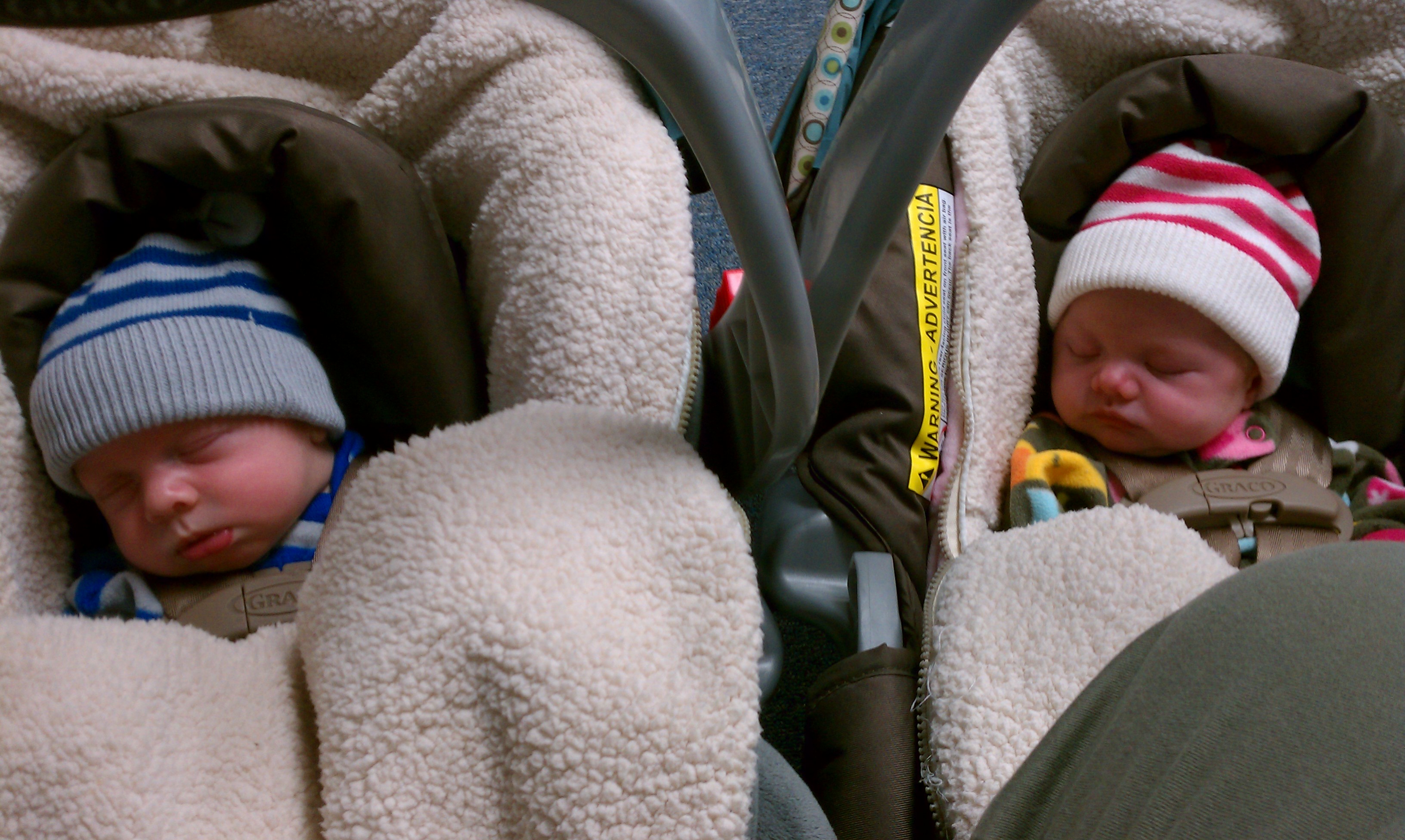In August 2012, when we found out that we were expecting twins, my immediate reaction was panic. I tell people all the time, that after finding out, I don’t think I even blinked for 24 hours. I was afraid of so many things in those early days of knowing: something happening to one or both of them, the label of a high risk pregnancy, restrictions being placed on me that would impact my other kids, premature labor and birth and the NICU, a c-section, and of course just the prospect of having two infants to care for at the same time. I could get past the potential medical issues. For one thing, I was fairly certain that based on my previous history that I’d have no problems carrying the babies close to term. Secondly, I already had one NICU experience under my belt, and while I didn’t relish the possibility of it happening again. I knew that I could make it through if it did. The hardest thing to wrap my head around was that there would be two babies here, constantly requiring my care, in addition to three other small people who already lived here, and were very set in their ways. It didn’t help either that twin moms around every corner told me stories of woe and catastrophized every worst possible scenario—not unlike the things say when you are expecting your firstborn, but somehow…worse. “Prepare to NEVER sleep again!” “You will never leave the house with both of them alone; it’s just too much work!” “Don’t plan on having any sort of social life, especially for the first year. Your life will be babies babies babies!” I’ve always sort of excelled at the newborn stage, and these comments knocked me down, and made me question whether or not I’d truly be able to handle everything that was to come. I was sure it would be terrible.
