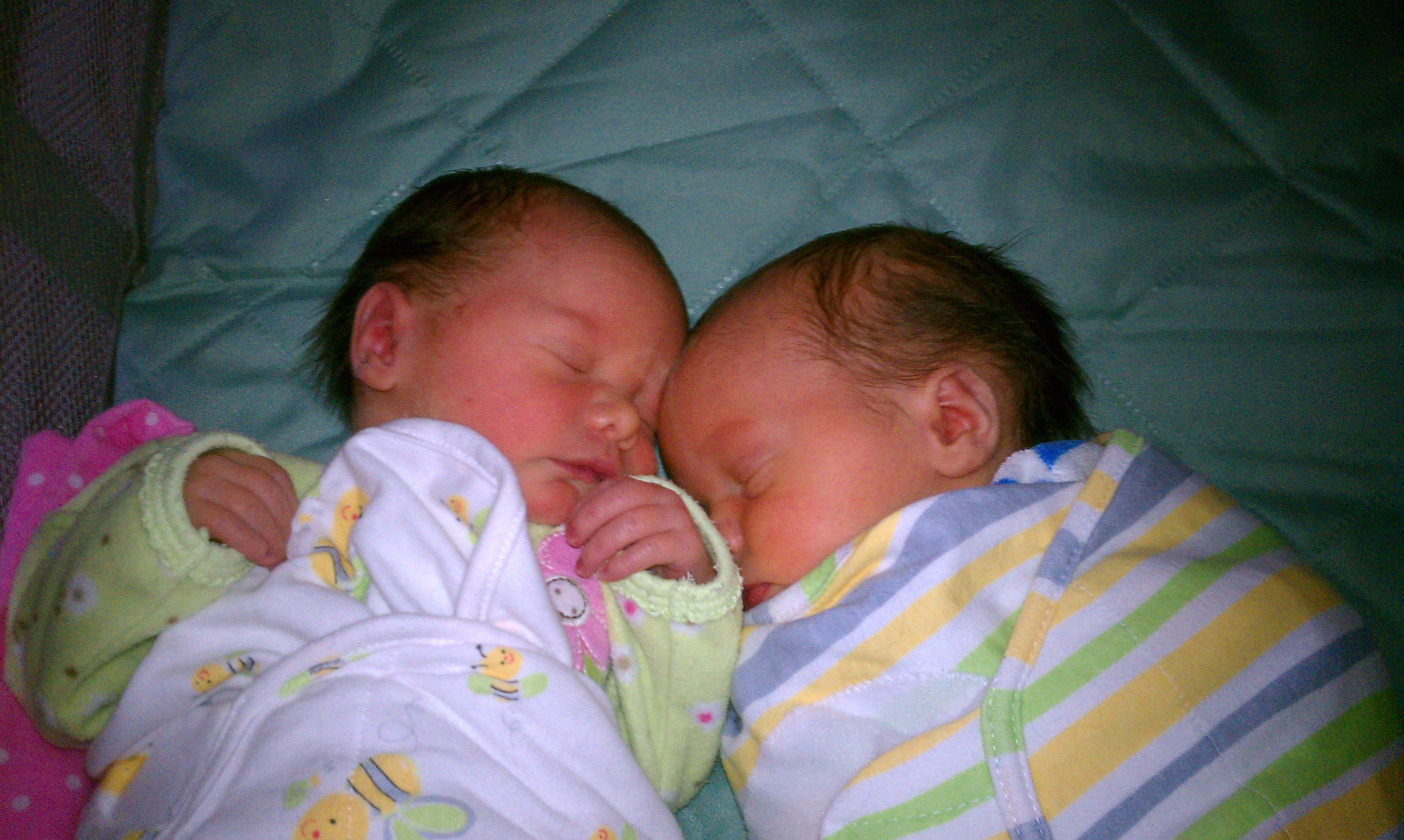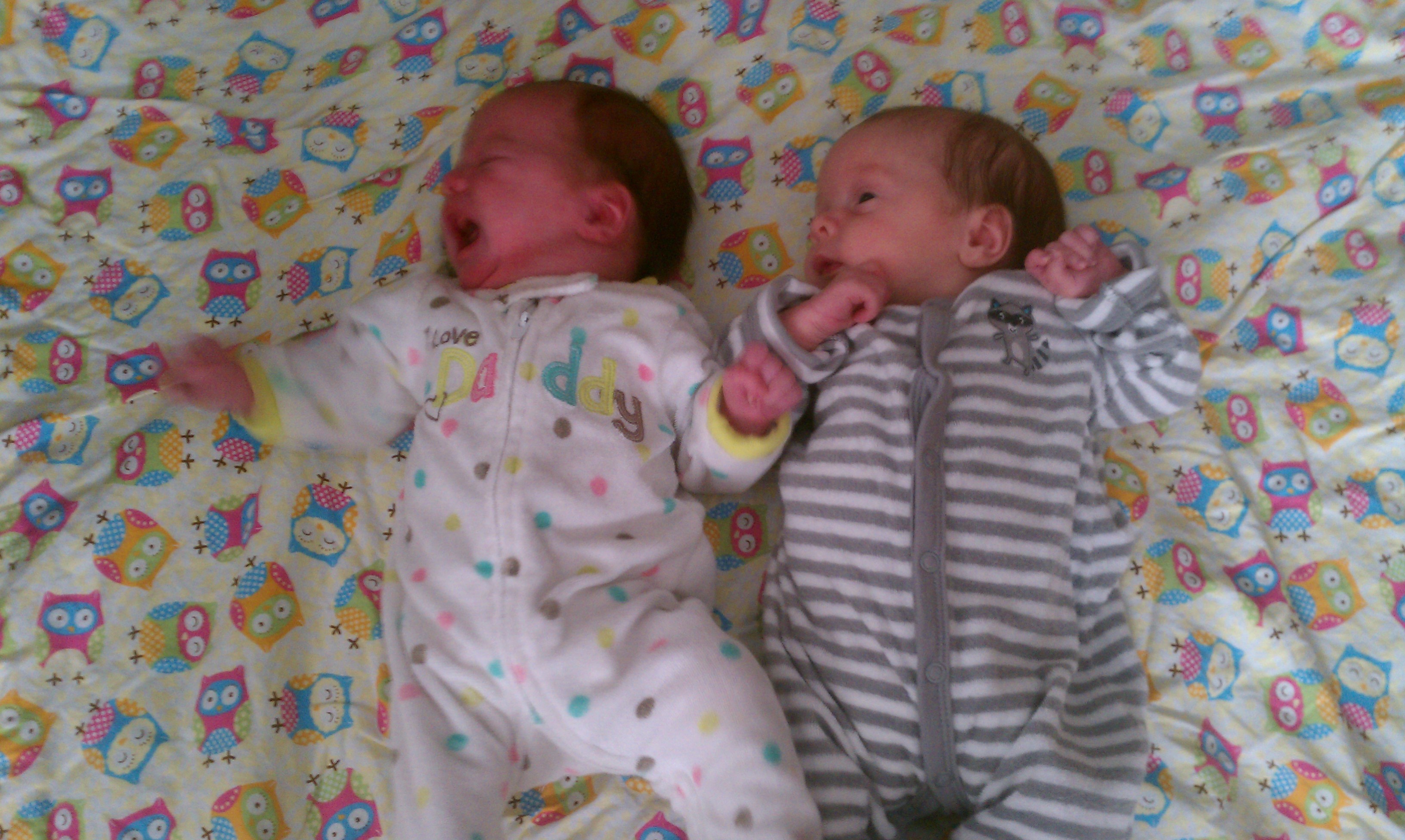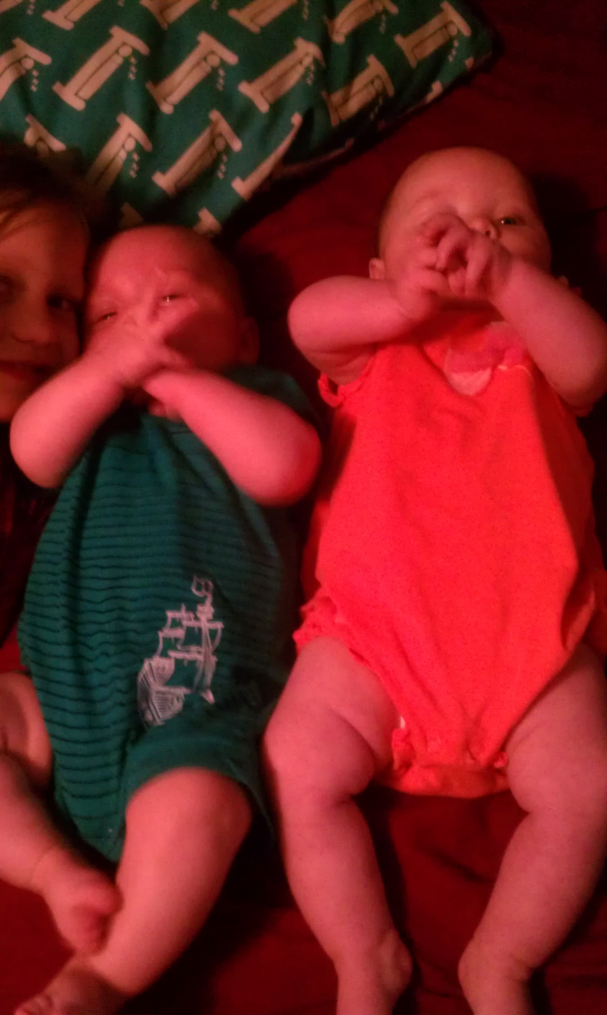 In August 2012, when we found out that we were expecting twins, my immediate reaction was panic. I tell people all the time, that after finding out, I don’t think I even blinked for 24 hours. I was afraid of so many things in those early days of knowing: something happening to one or both of them, the label of a high risk pregnancy, restrictions being placed on me that would impact my other kids, premature labor and birth and the NICU, a c-section, and of course just the prospect of having two infants to care for at the same time. I could get past the potential medical issues. For one thing, I was fairly certain that based on my previous history that I’d have no problems carrying the babies close to term. Secondly, I already had one NICU experience under my belt, and while I didn’t relish the possibility of it happening again. I knew that I could make it through if it did. The hardest thing to wrap my head around was that there would be two babies here, constantly requiring my care, in addition to three other small people who already lived here, and were very set in their ways. It didn’t help either that twin moms around every corner told me stories of woe and catastrophized every worst possible scenario—not unlike the things say when you are expecting your firstborn, but somehow…worse. “Prepare to NEVER sleep again!” “You will never leave the house with both of them alone; it’s just too much work!” “Don’t plan on having any sort of social life, especially for the first year. Your life will be babies babies babies!” I’ve always sort of excelled at the newborn stage, and these comments knocked me down, and made me question whether or not I’d truly be able to handle everything that was to come. I was sure it would be terrible.
