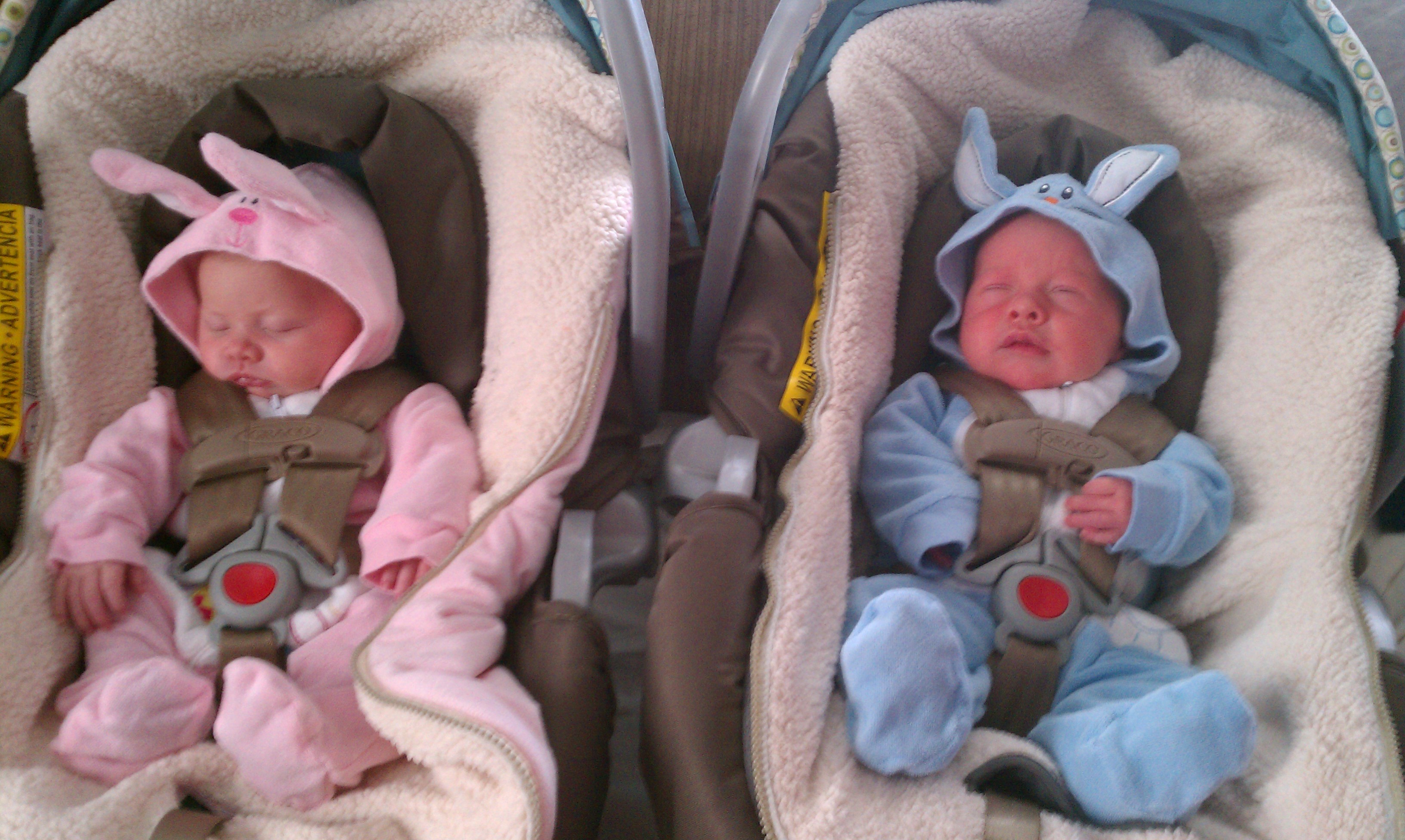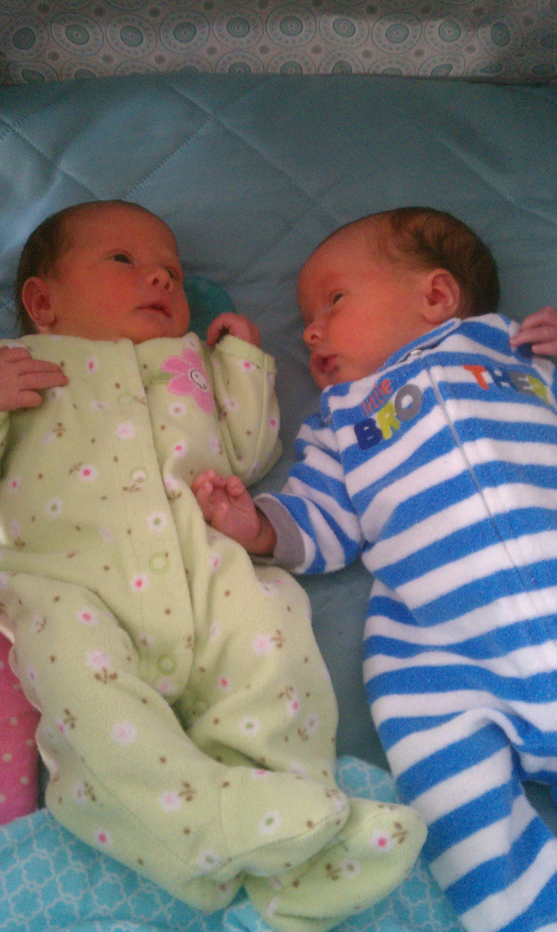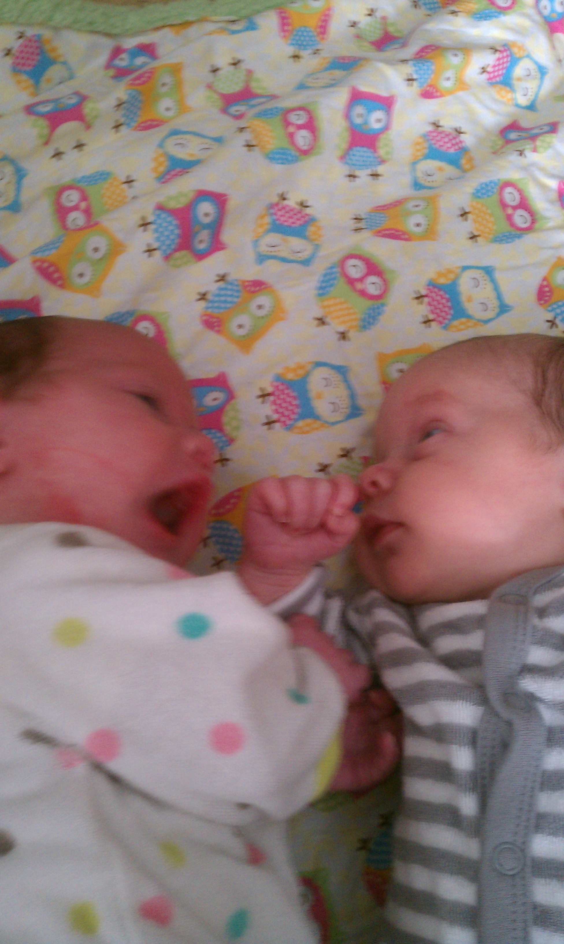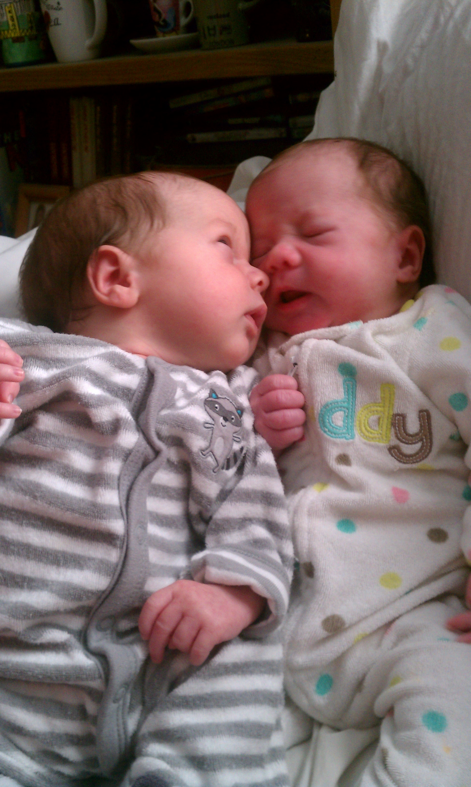 In August 2012, when we found out that we were expecting twins, my immediate reaction was panic. I tell people all the time, that after finding out, I don’t think I even blinked for 24 hours. I was afraid of so many things in those early days of knowing: something happening to one or both of them, the label of a high risk pregnancy, restrictions being placed on me that would impact my other kids, premature labor and birth and the NICU, a c-section, and of course just the prospect of having two infants to care for at the same time. I could get past the potential medical issues. For one thing, I was fairly certain that based on my previous history that I’d have no problems carrying the babies close to term. Secondly, I already had one NICU experience under my belt, and while I didn’t relish the possibility of it happening again. I knew that I could make it through if it did. The hardest thing to wrap my head around was that there would be two babies here, constantly requiring my care, in addition to three other small people who already lived here, and were very set in their ways. It didn’t help either that twin moms around every corner told me stories of woe and catastrophized every worst possible scenario—not unlike the things say when you are expecting your firstborn, but somehow…worse. “Prepare to NEVER sleep again!” “You will never leave the house with both of them alone; it’s just too much work!” “Don’t plan on having any sort of social life, especially for the first year. Your life will be babies babies babies!” I’ve always sort of excelled at the newborn stage, and these comments knocked me down, and made me question whether or not I’d truly be able to handle everything that was to come. I was sure it would be terrible.