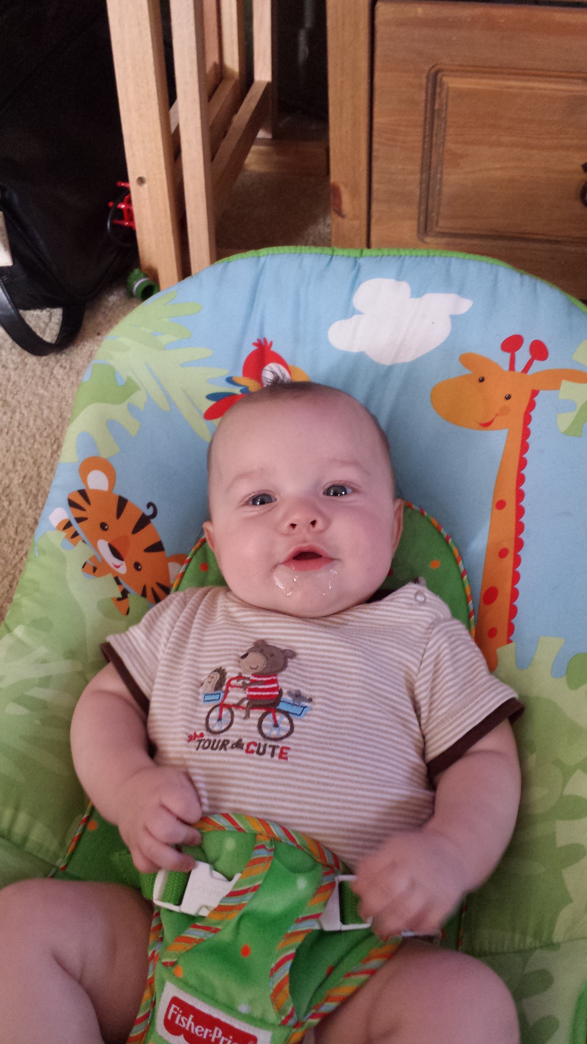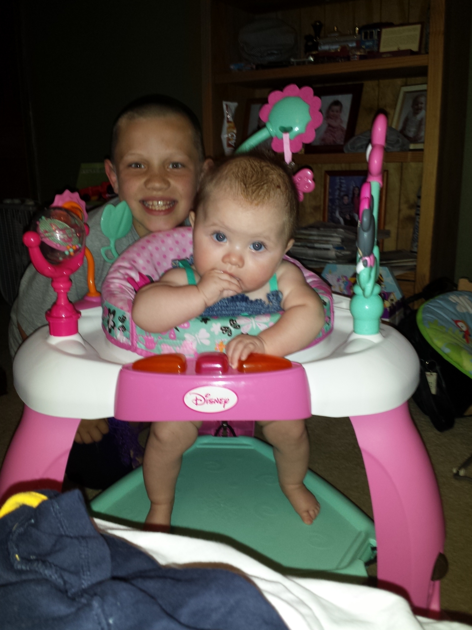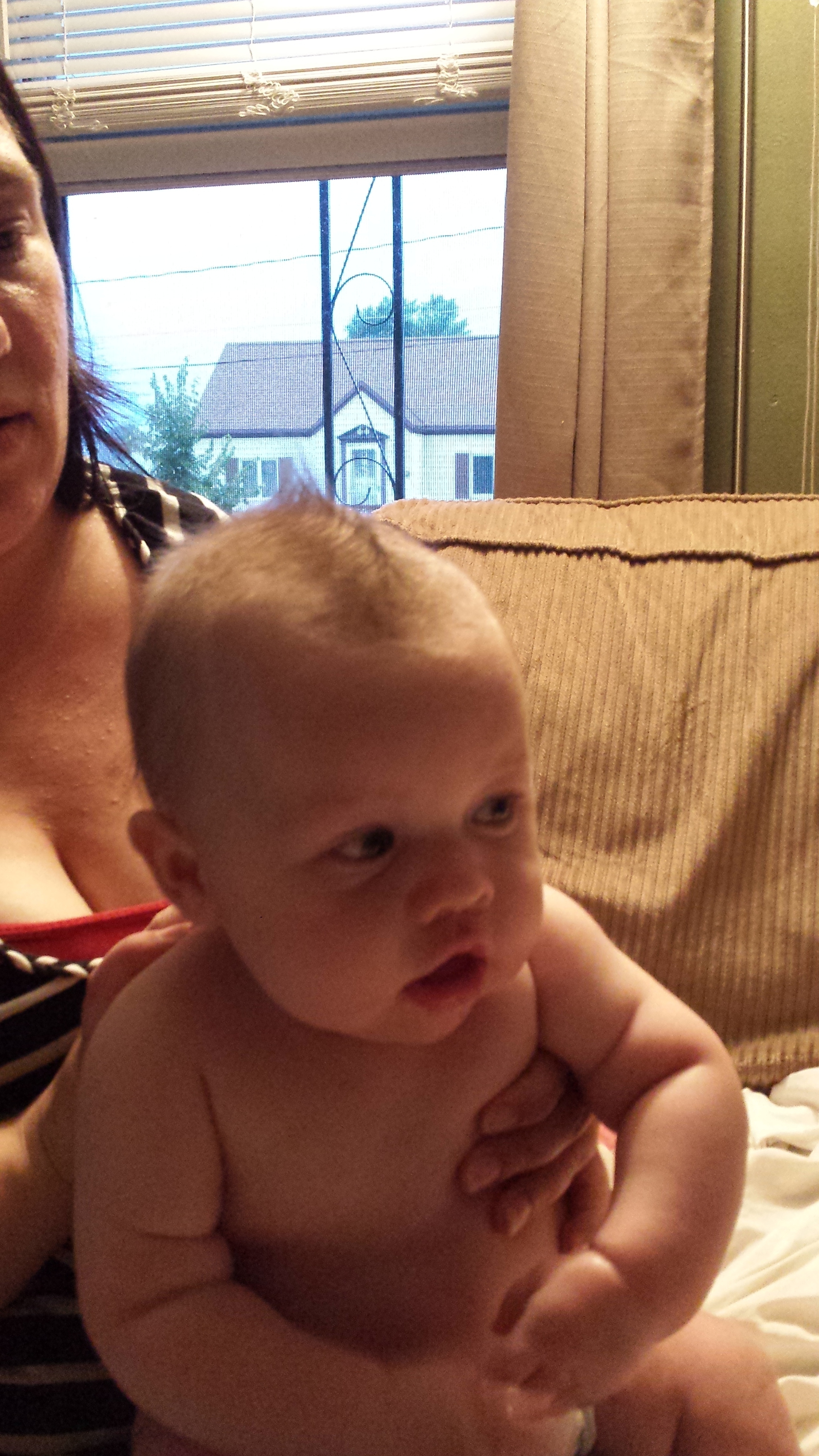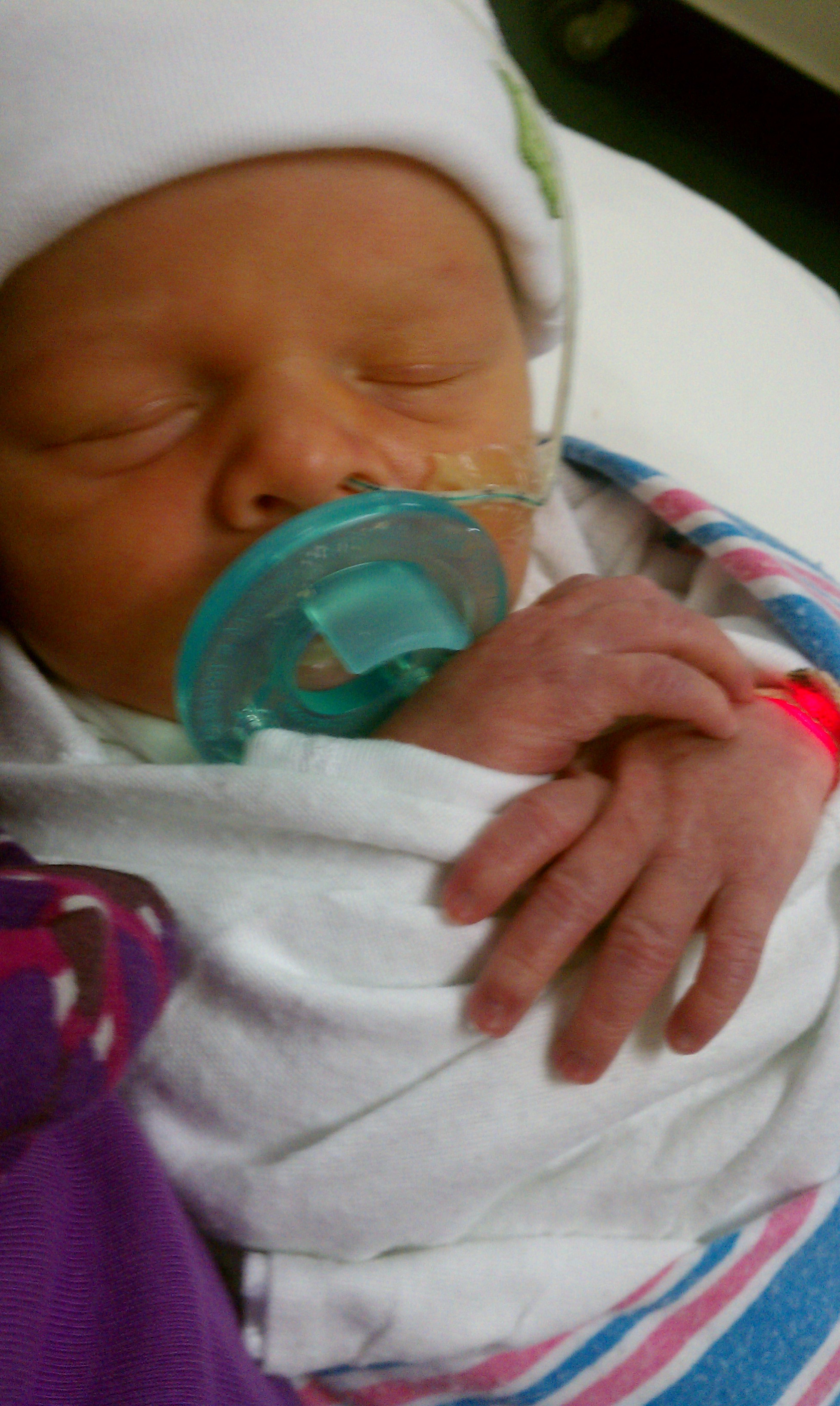 We got to the hospital, and got Hannah situated in Aunt G’s car and I insisted on walking in to labor and delivery, and managed to soak all the way through my pants on the way in, so that was nice. There was paperwork, and then we were put in a combined triage/recovery room because there were no labor and delivery rooms available. I changed in to a gown, splatted more water all over the floor, and did not need a litmus test to determine that my water had in fact broken. We were there to stay.