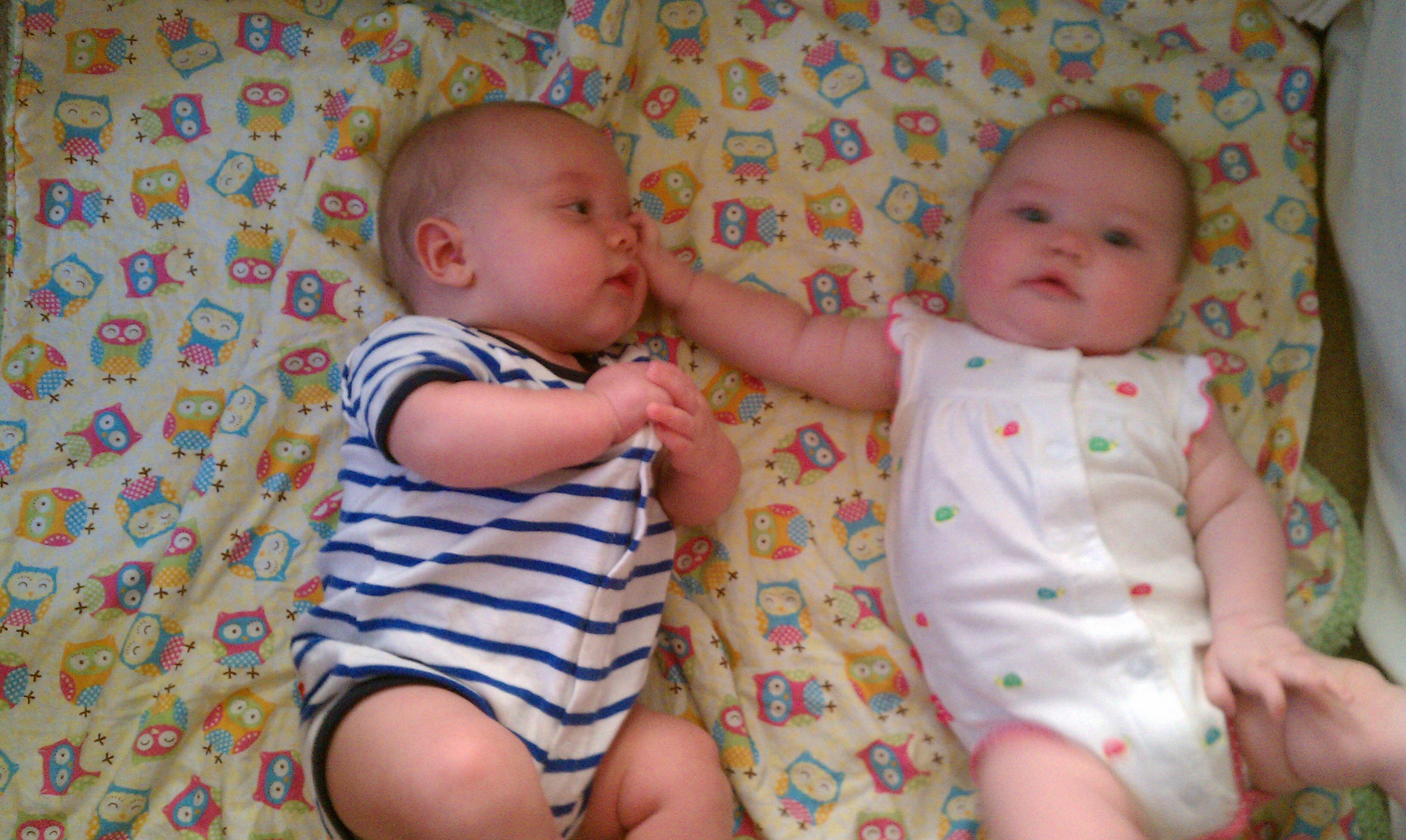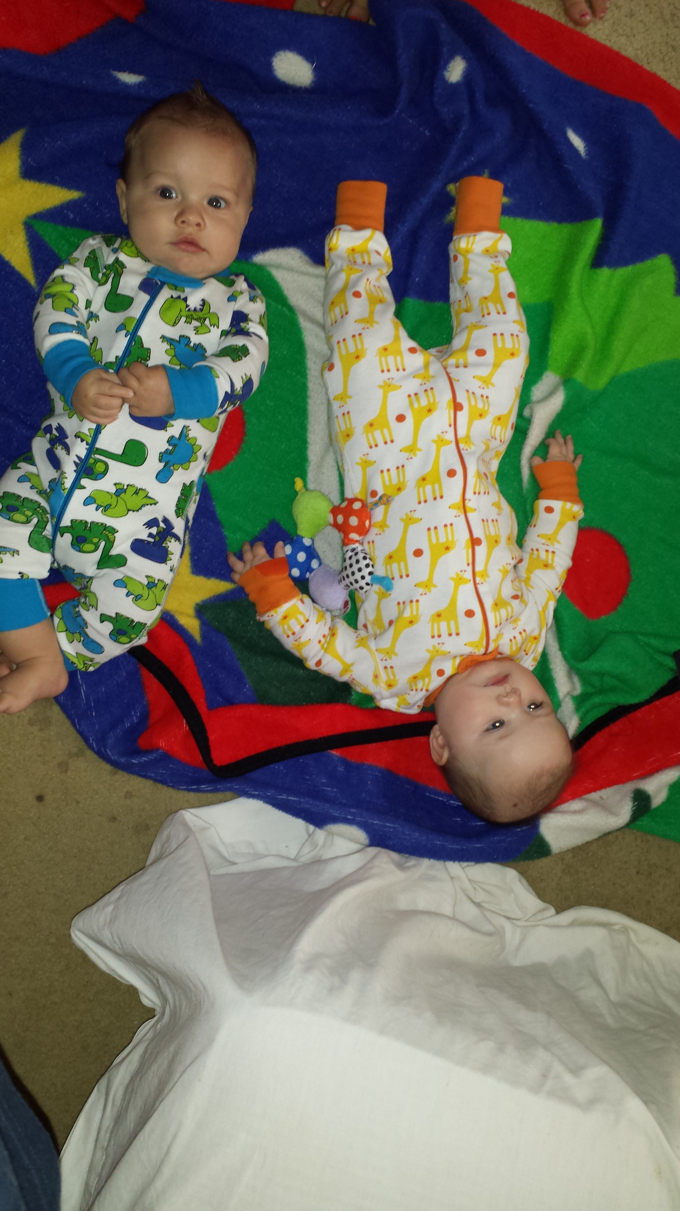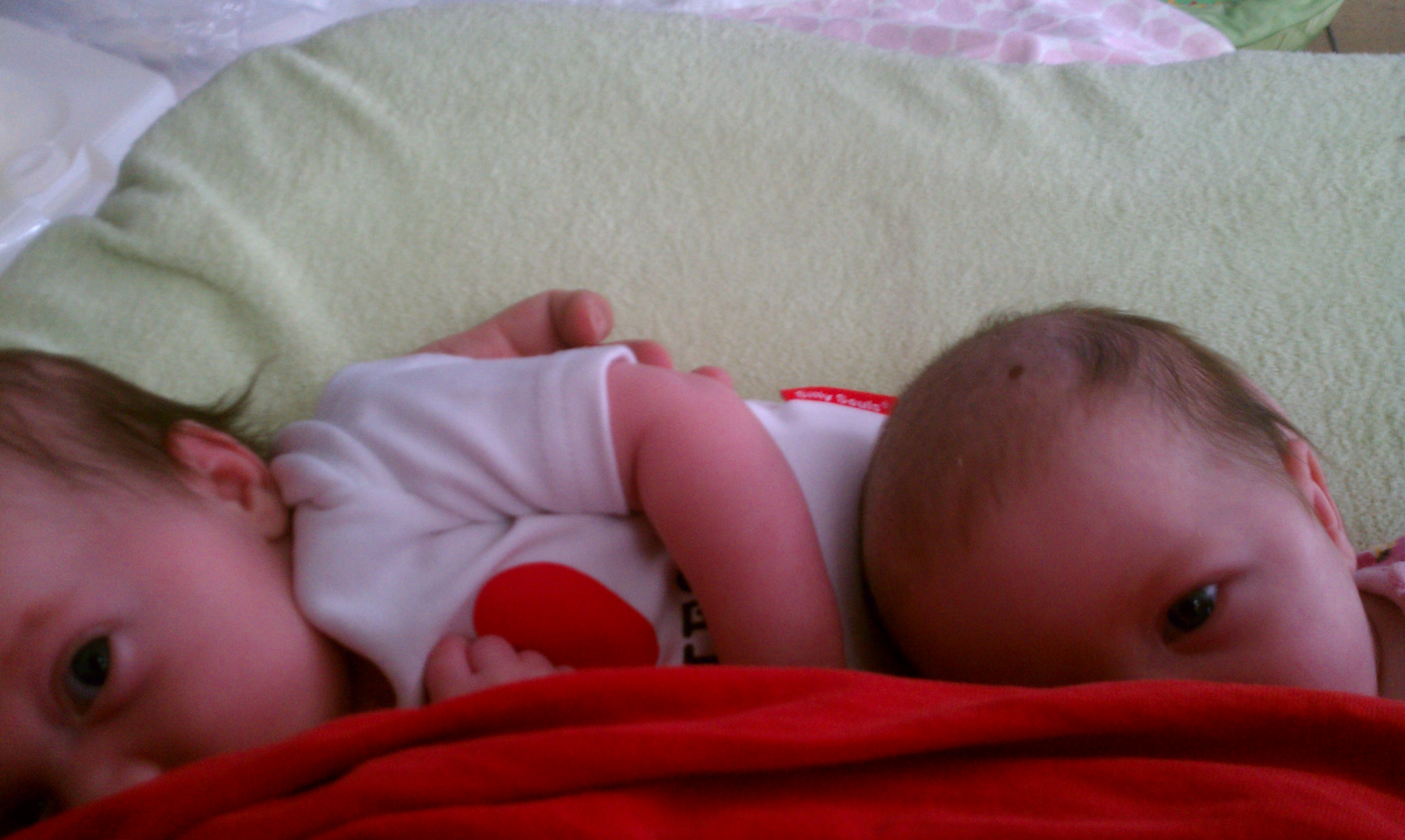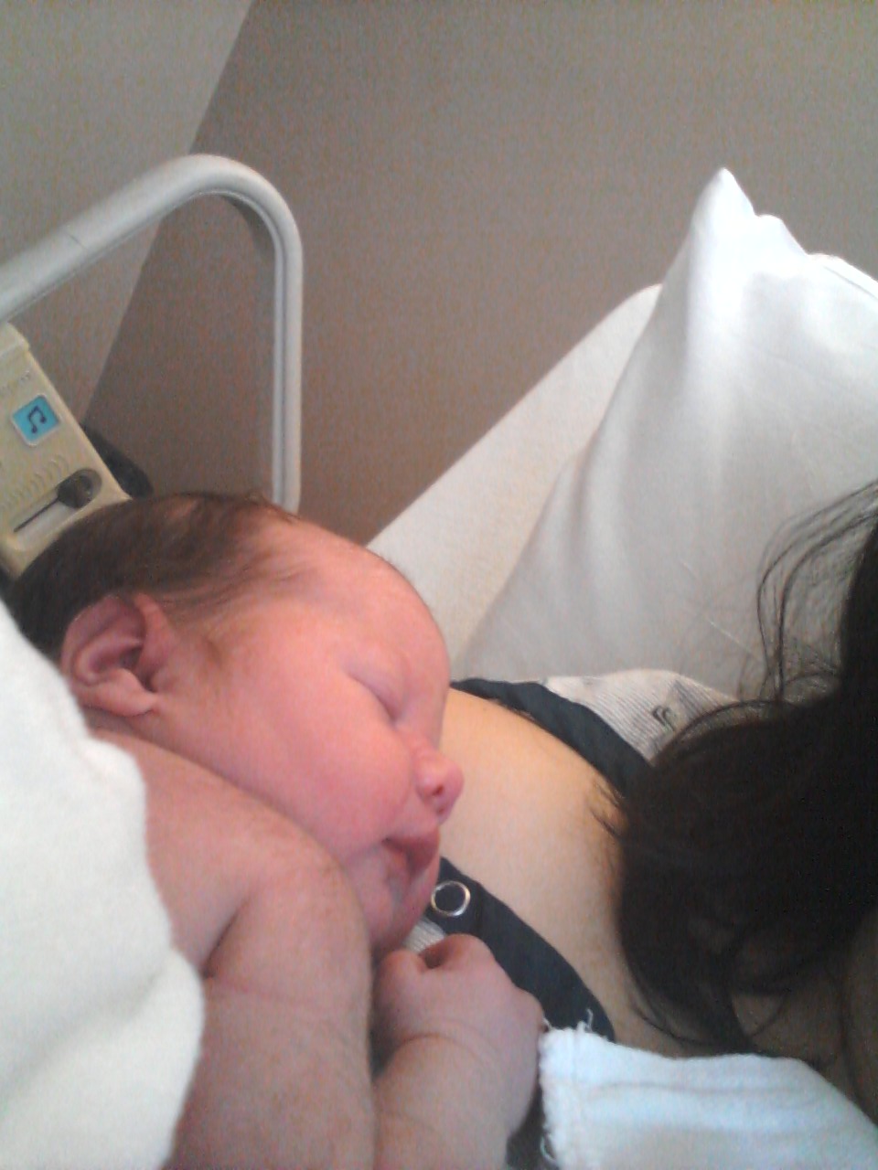 Anyway, back in recovery, they brought the babies in, and I was finally able to hold them. I was lying flat so it was hard, but first one at a time, and then with Ed’s help, together. Soon, I was able to be propped up, and was able to nurse Molly. When she was done, she was taken up to the nursery to be assessed, and we tried with Gus. He wouldn’t latch, as hard as we tried. He cried and cried and would settle for a minute or 2, and then would cry some more. Eventually, they took him to the nursery as well.