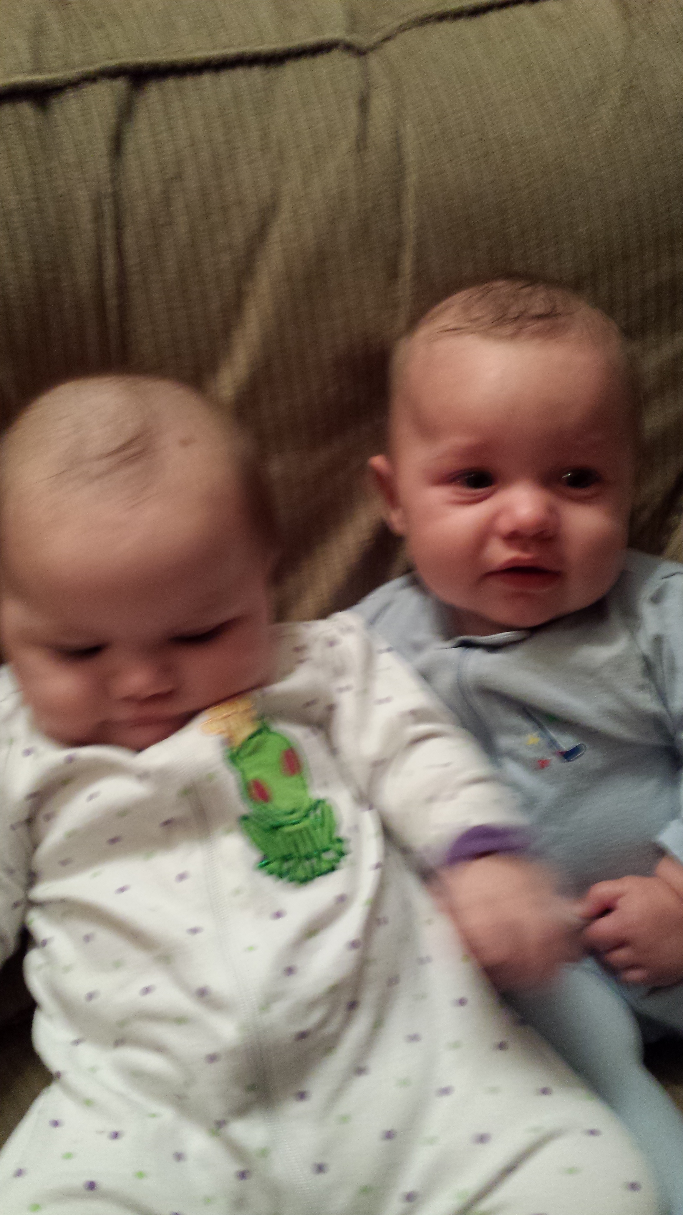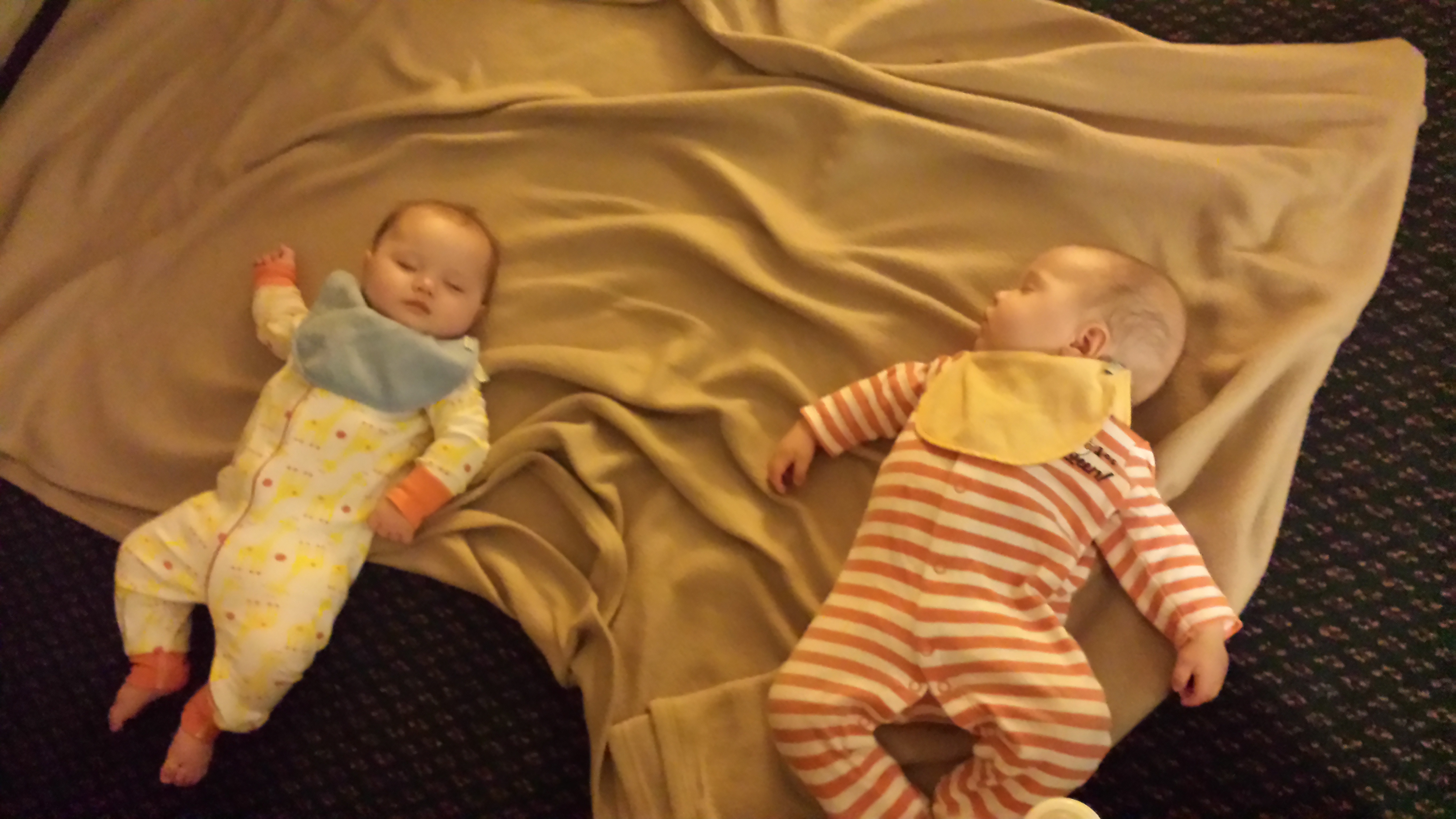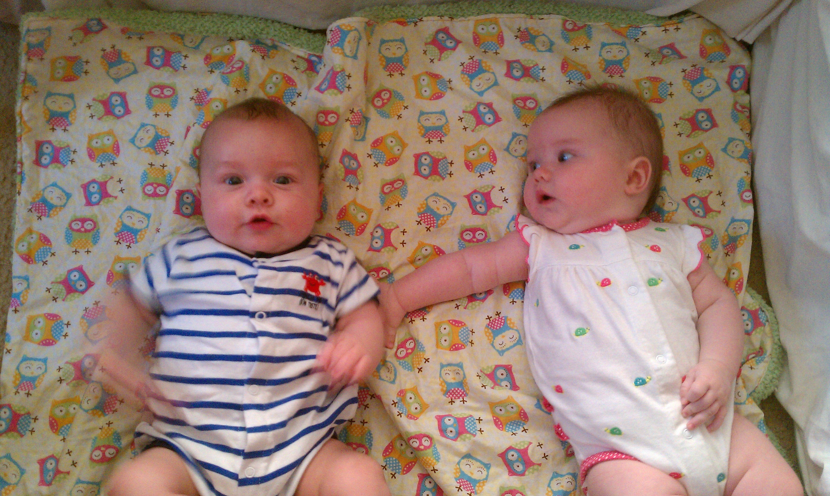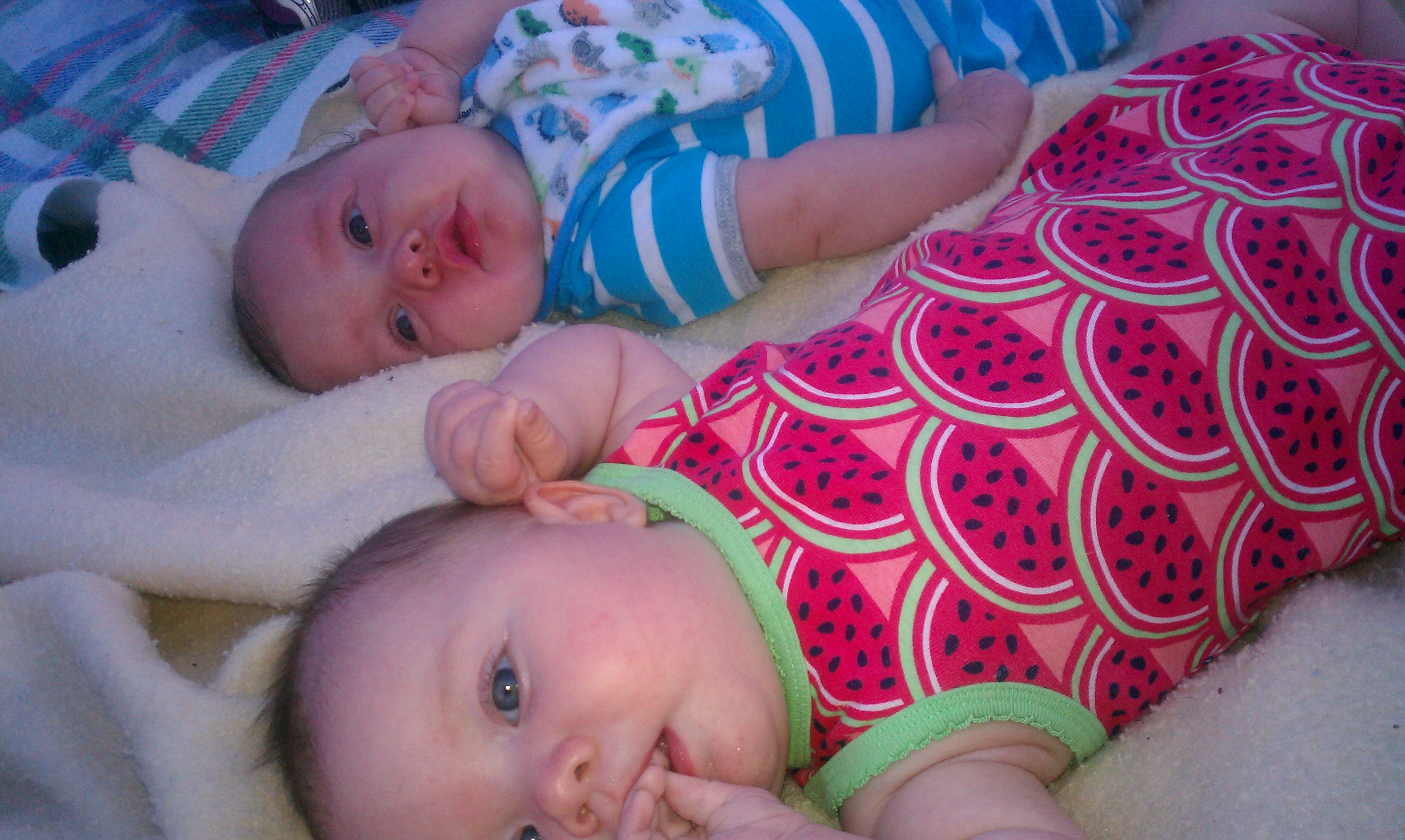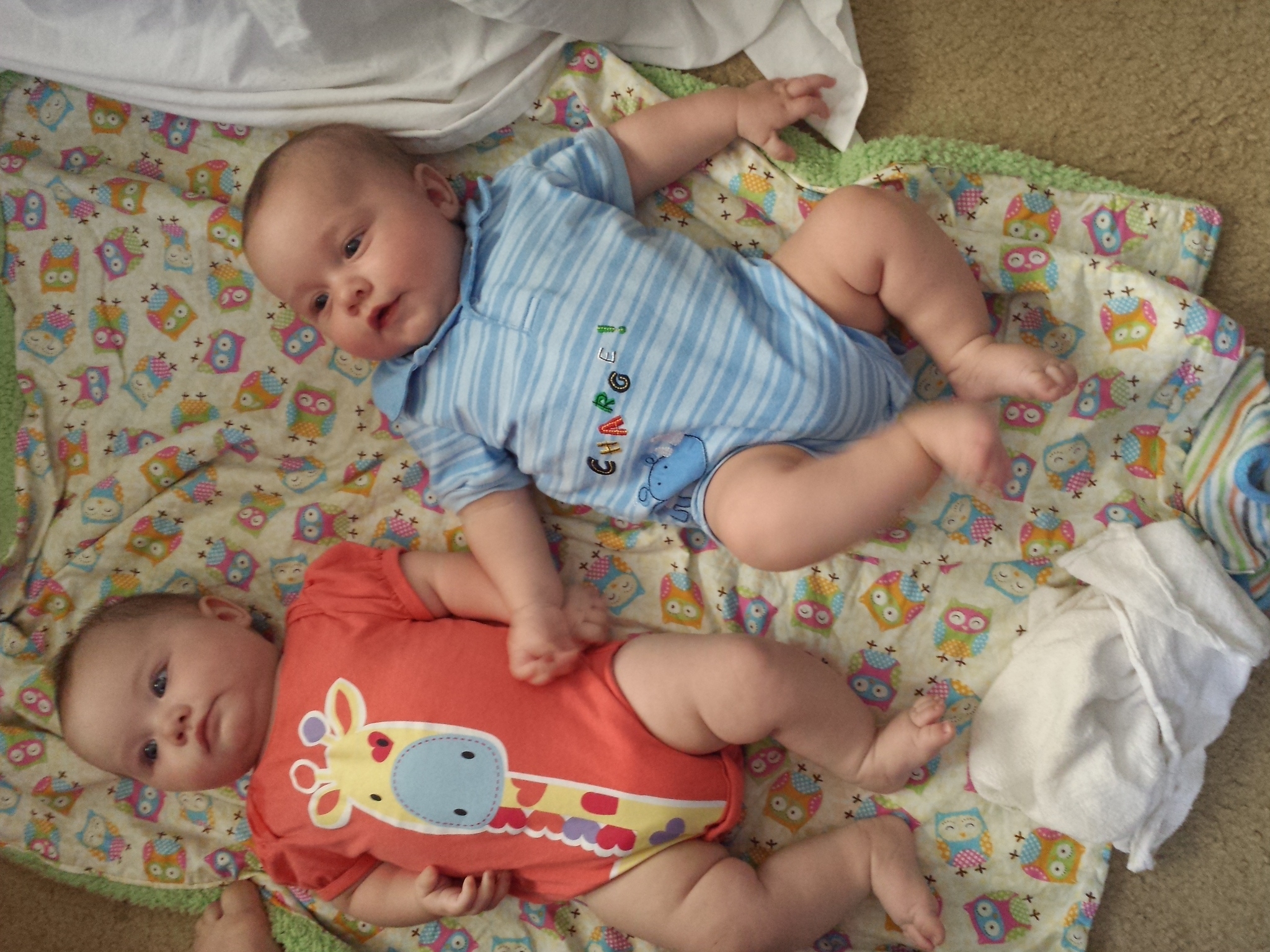 Anyway, back in recovery, they brought the babies in, and I was finally able to hold them. I was lying flat so it was hard, but first one at a time, and then with Ed’s help, together. Soon, I was able to be propped up, and was able to nurse Molly. When she was done, she was taken up to the nursery to be assessed, and we tried with Gus. He wouldn’t latch, as hard as we tried. He cried and cried and would settle for a minute or 2, and then would cry some more. Eventually, they took him to the nursery as well.