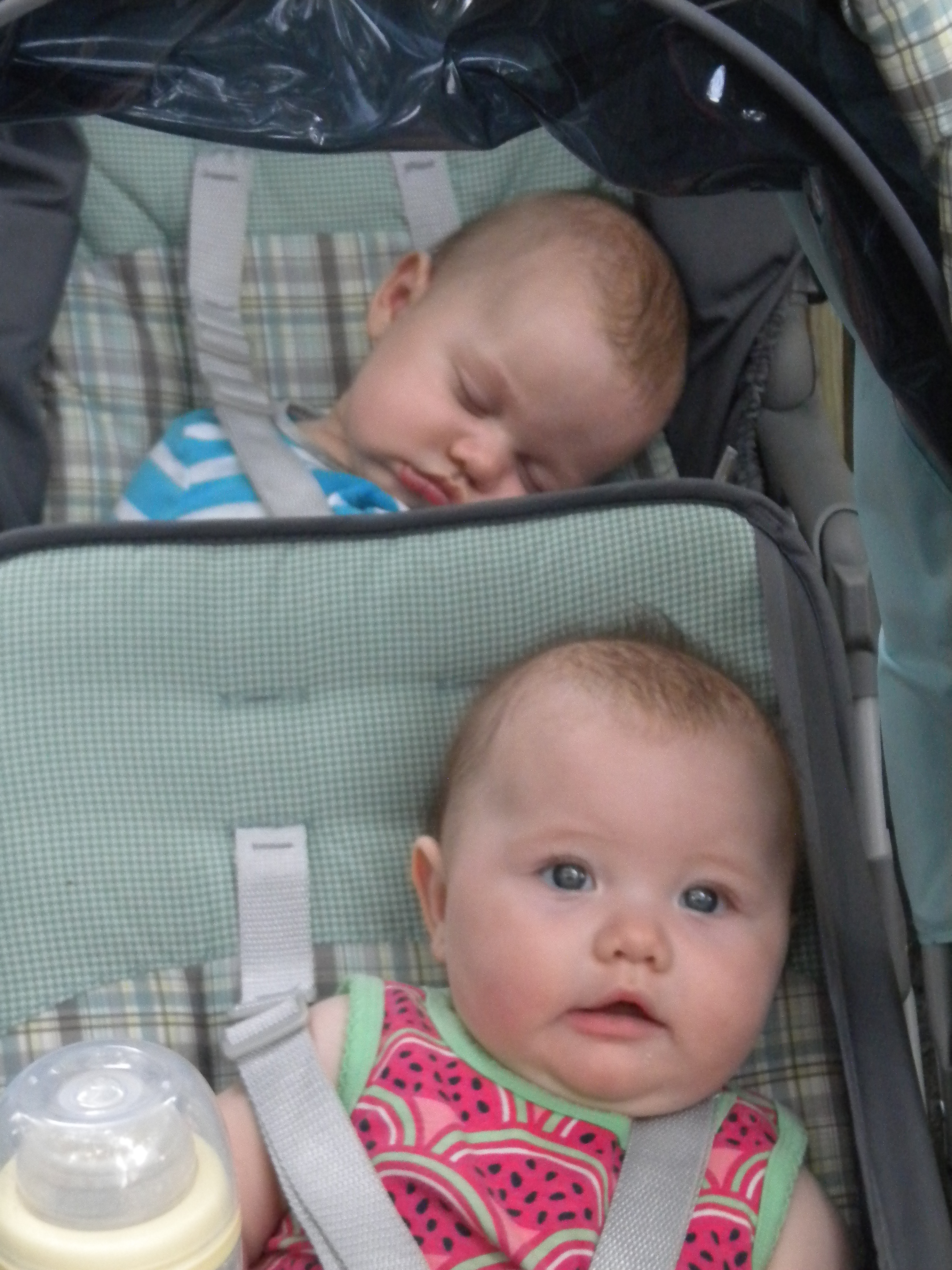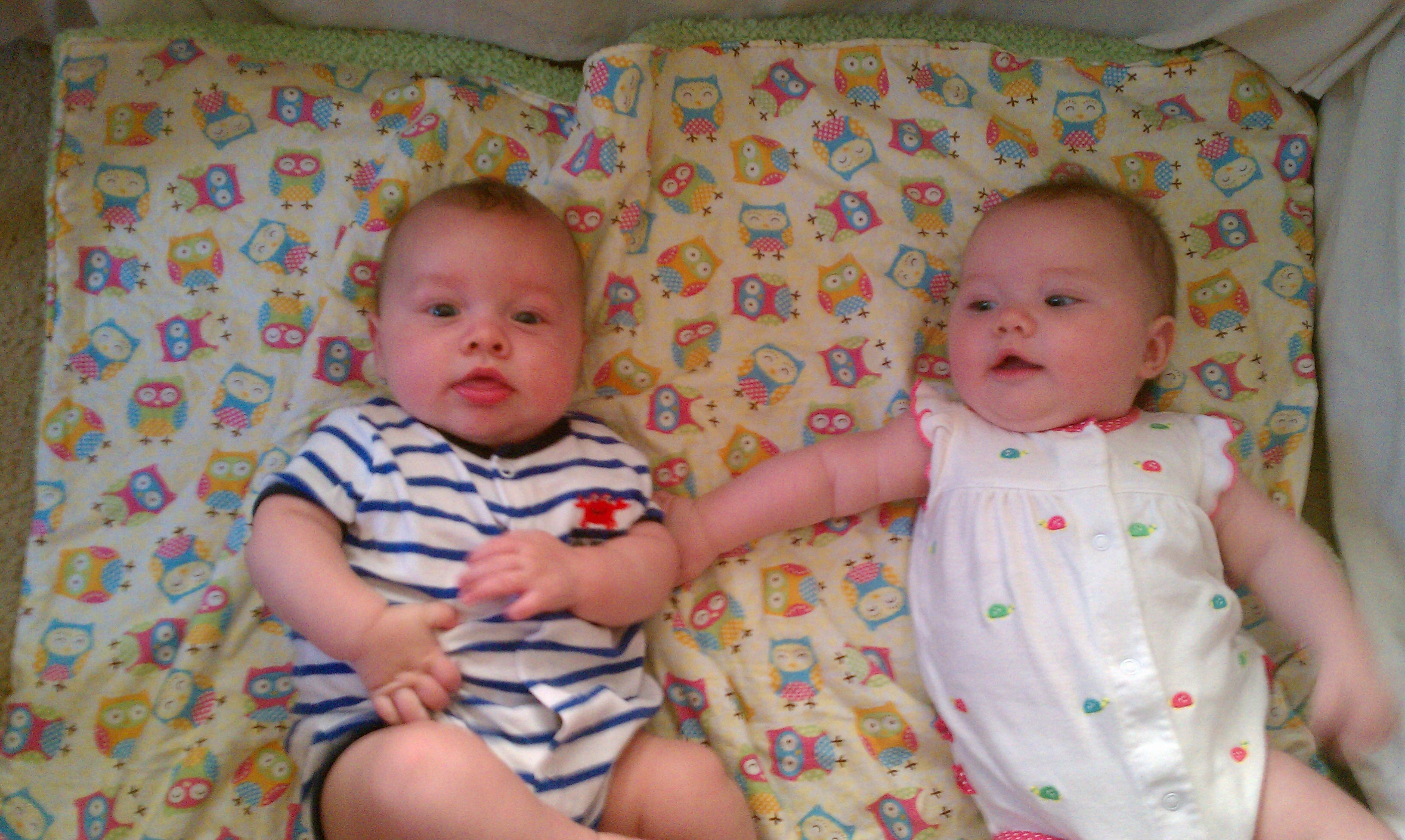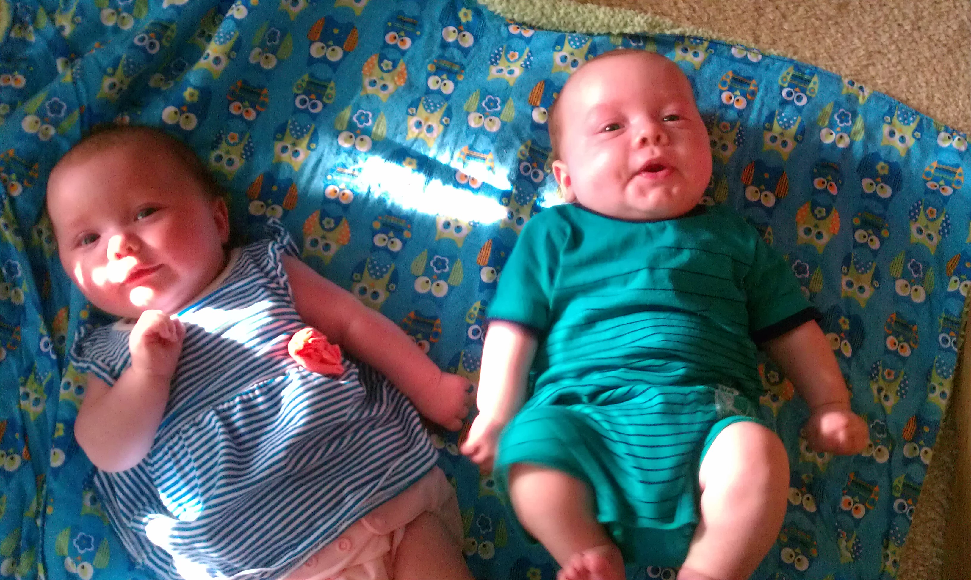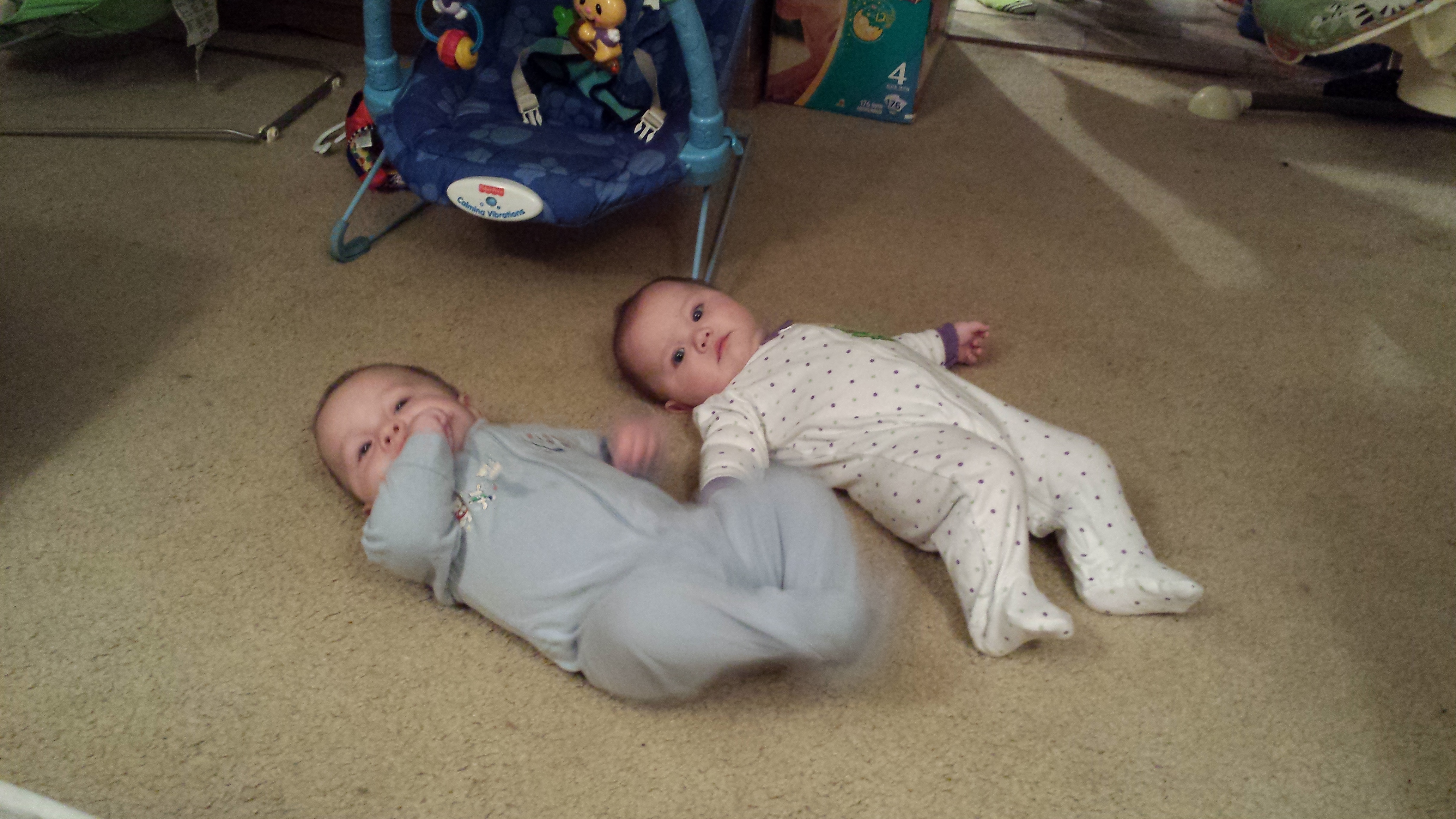 Anyway, back in recovery, they brought the babies in, and I was finally able to hold them. I was lying flat so it was hard, but first one at a time, and then with Ed’s help, together. Soon, I was able to be propped up, and was able to nurse Molly. When she was done, she was taken up to the nursery to be assessed, and we tried with Gus. He wouldn’t latch, as hard as we tried. He cried and cried and would settle for a minute or 2, and then would cry some more. Eventually, they took him to the nursery as well.