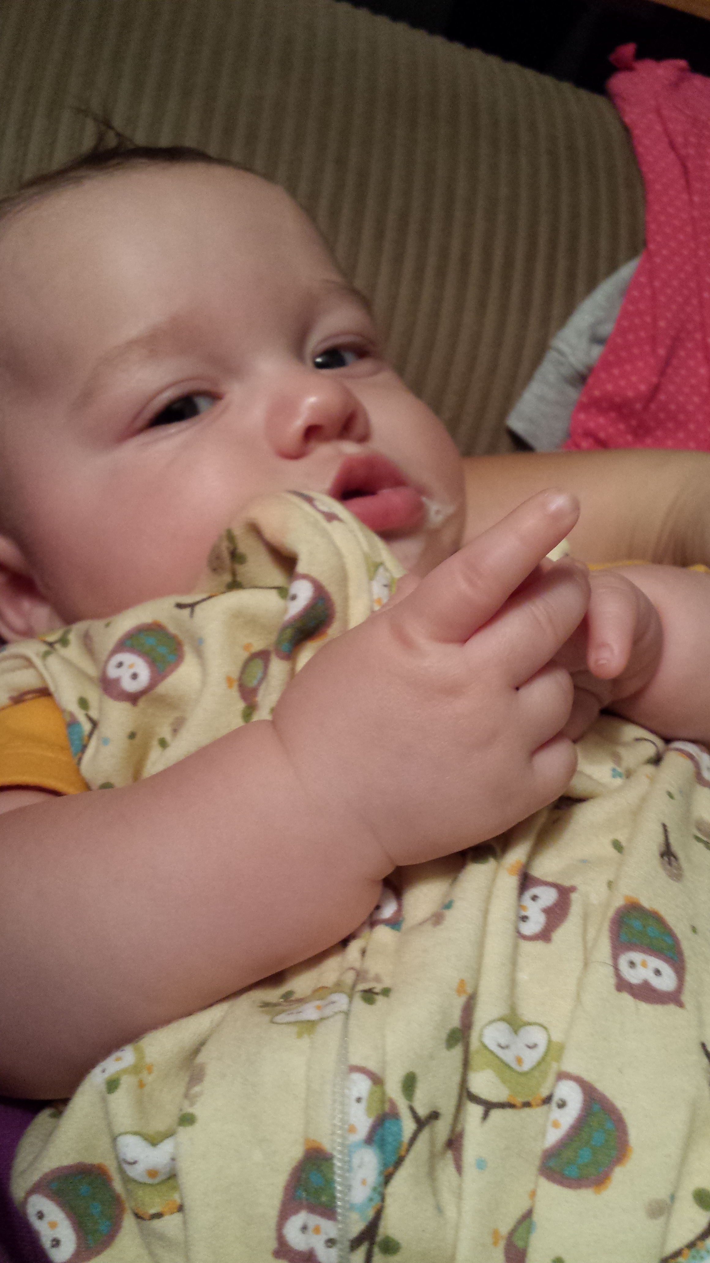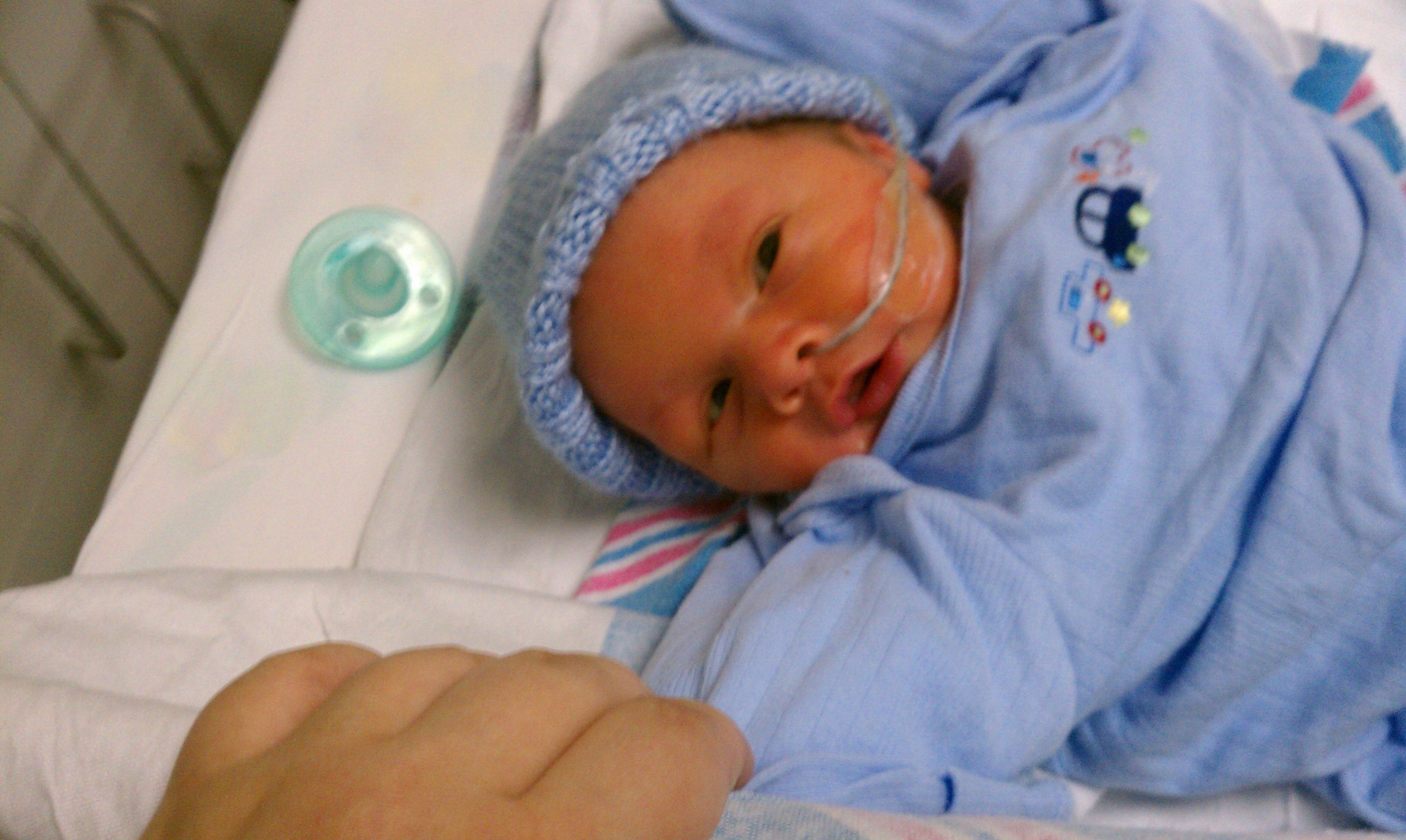I spent several hours in recovery waiting for a room. Ed left for a bit to make sure the big kids were situated. He got back after 10PM and I was still in recovery, but getting ready to move. When we got upstairs, we were told that Gus had a tube feeding because he wouldn’t take a bottle, and that they were watching him. Molly was able to come to my room with me. It wasn’t long before Ed left, and the nurses came to say that Gus was breathing quickly and still would not feed, so he was going to the NICU.