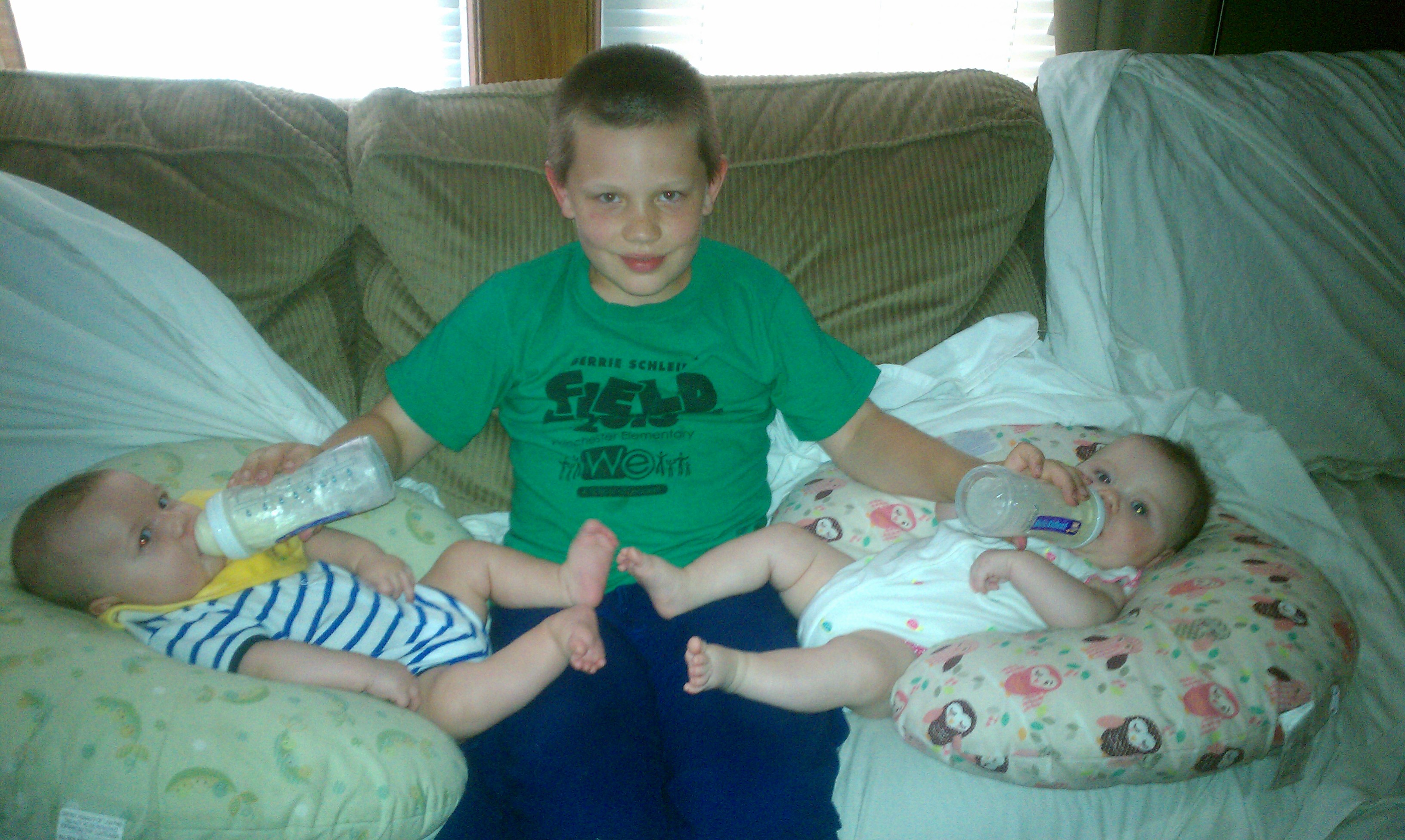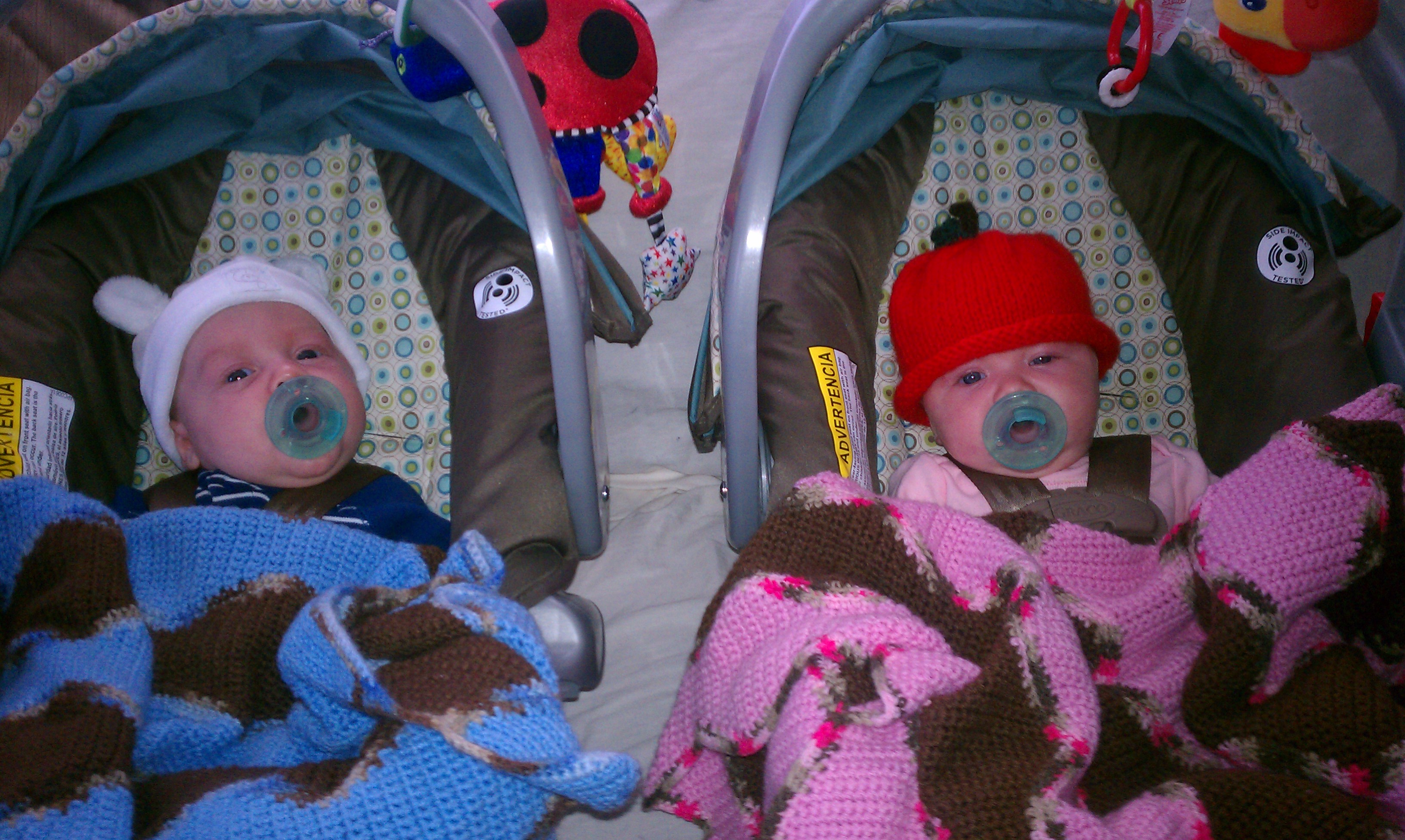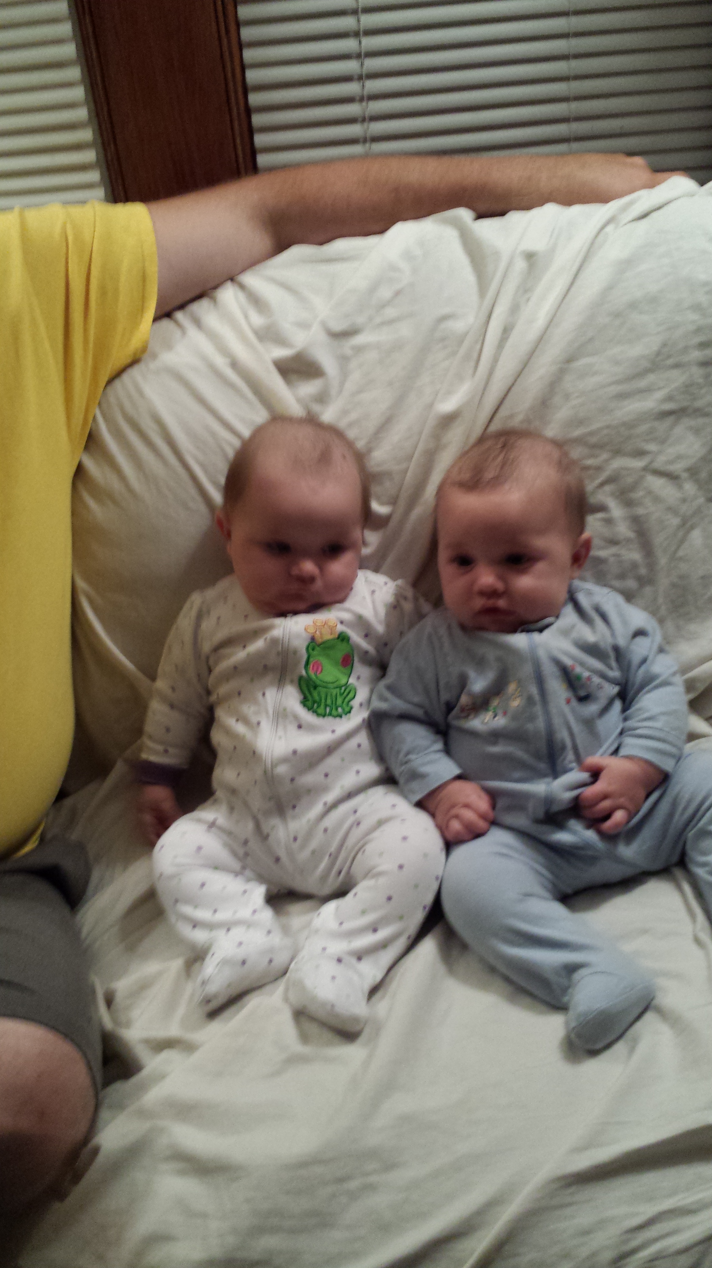 I don’t remember much of what happened as they finished cleaning me out and stitching me up. Ed was back and forth between the babies and me. The anesthesiologist told me stories of his own twins, talked about my irregular heartbeat, and my thyroid. I felt like I was in and out of it, and everything was kind of surreal. Soon enough though, it was over and I was being moved back to my rolling bed. That is the one thing I remember feeling–half my body was asleep and I was told to rock it back and forth so they could get me back in to it. I felt all of my insides shift, but couldn’t feel the outside of my body. It was…weird.